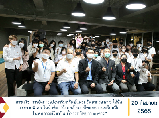 On September 20, 2022, Department of Real Estate and Facility Management led by Ajarn Dr. Thongchai Thongma, Deputy Dean for Administration. Faculty of Industrial Technology Assistant Professor Jitrawadee Rung-in Kanka, Head of the branch, gave a special lecture on the topic “Career Information and Preparation for Professional Experience in Facility Management” to study in the field of Real Estate Management and Building Resources by Mr. Prasit Charaswichakorn, Senior Managing Director. Director of Property Management, Mr. Arun Sirijanusorn, Senior Managing Director and Human Resources team were speakers at the multipurpose activity room, Building 42, Faculty of Industrial Technology. Suan Sunandha Rajabhat University.