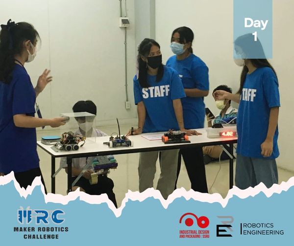 The atmosphere of the Maker Robotics Challenge 2023, the first day, was held from 7 - 9 April 2023 from 8:00 AM to 6:00 PM at The Hub Rangsit Shopping Center by the Department of Robotics Engineering. Faculty of Industrial Technology Suan Sunandha Rajabhat University Become a Contest Sponsor And there are students in the field of product and packaging design. Participated as a judge for a sumo robot competition