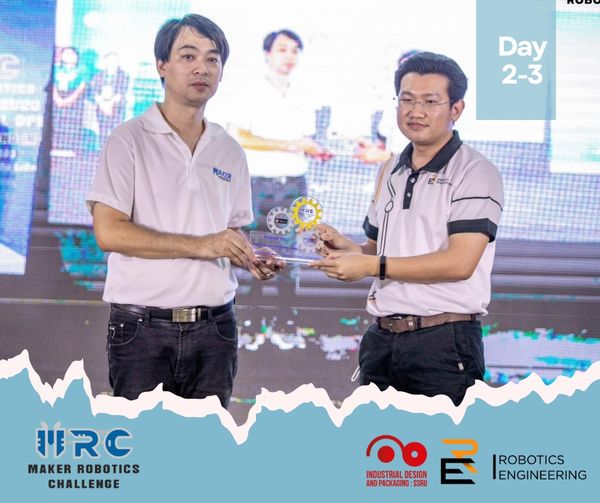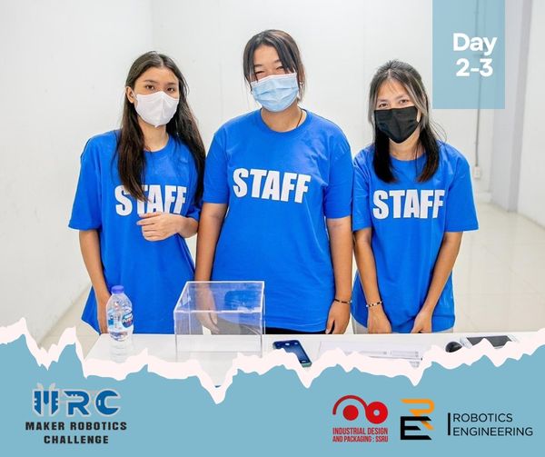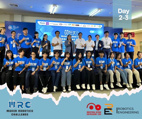 The atmosphere of the Maker Robotics Challenge 2023 competition and award ceremony on 8 - 9 April 2023 at The Hub Rangsit Shopping Center by the Department of Robotics Engineering. Faculty of Industrial Technology Suan Sunandha Rajabhat University Become a Contest Sponsor And there are students in the field of product and packaging design. Participated as a judge for a sumo robot competition