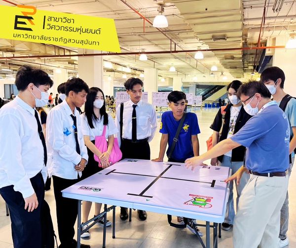 18 August 2023 Asst. Prof. Dr. Sethakarn Prongnuch, Lecturer in Robotics Engineering and 1st - 2nd year students in Robotics Engineering Join the jury meeting of the WRG Thailand Robotics Championship 2023 that will be held on 19 - 20 August 2023 at the 3rd - 4th floor, Zeer Rangsit Shopping Center.