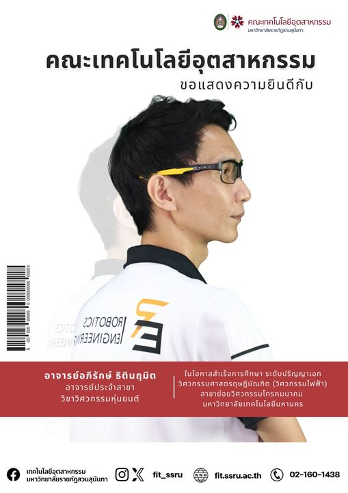 Faculty of Industrial Technology congratulations with Professor Aphirak Thitinaruemit, Lecturer in the Department of Robotics Engineering On the occasion of graduation Doctoral level Doctor of Engineering (Electrical Engineering) Telecommunications Engineering Subfield Mahanakorn University of Technology.