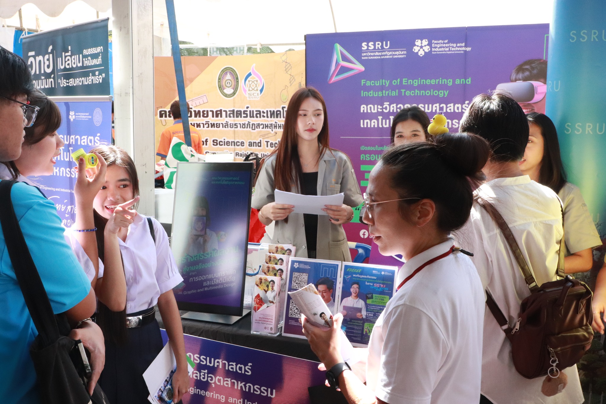 On December 18, 2024, the Faculty of Engineering and Industrial Technology joined the SSRU Open House 2024! Unlock your thoughts, create the future together at the Faculty of Science and Technology, Suan Sunandha Rajabhat University. There was also an activity to introduce the curriculum of the department at Room 4711, Building 47 and Building 42, Faculty of Engineering and Industrial Technology, a total of 9 departments.