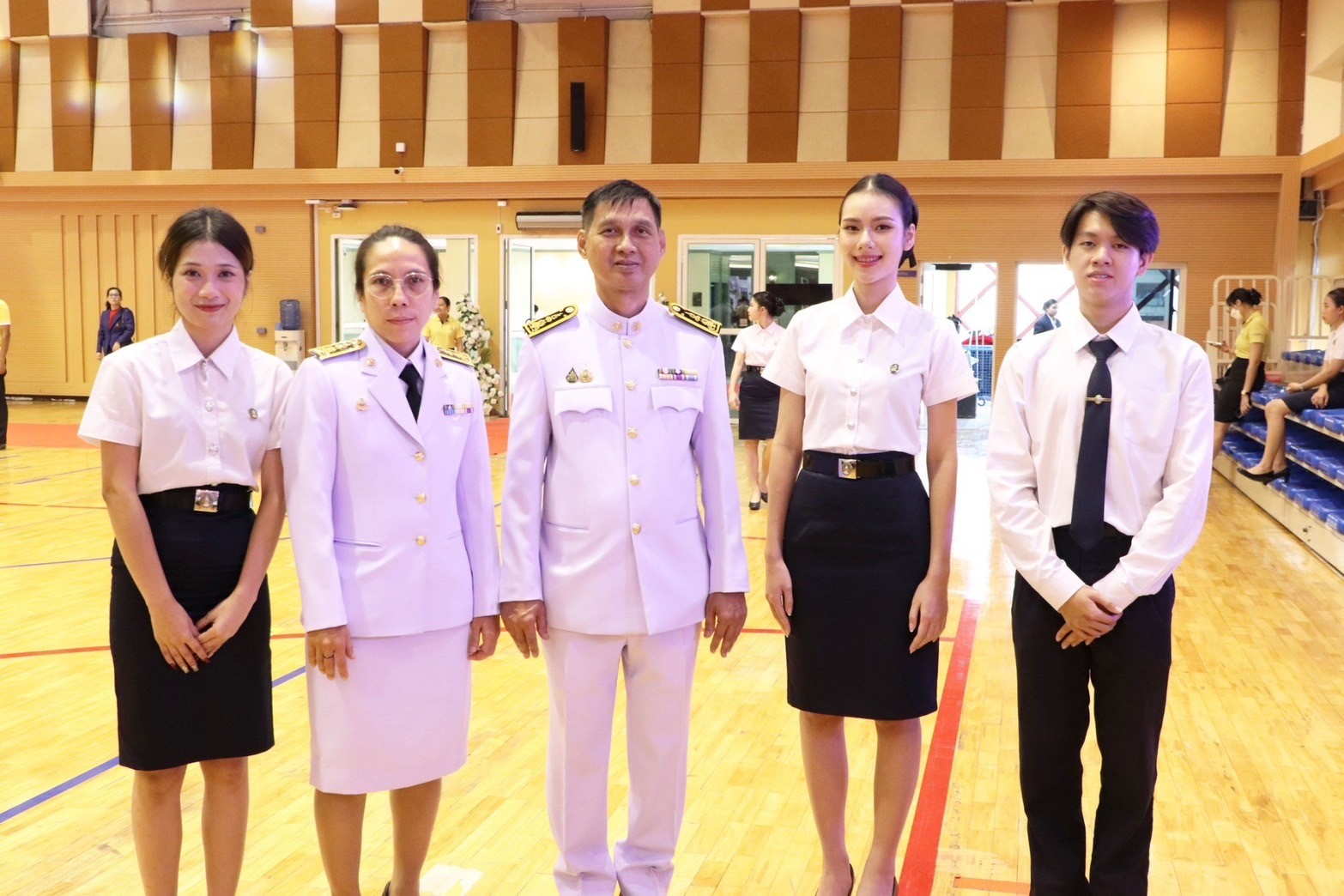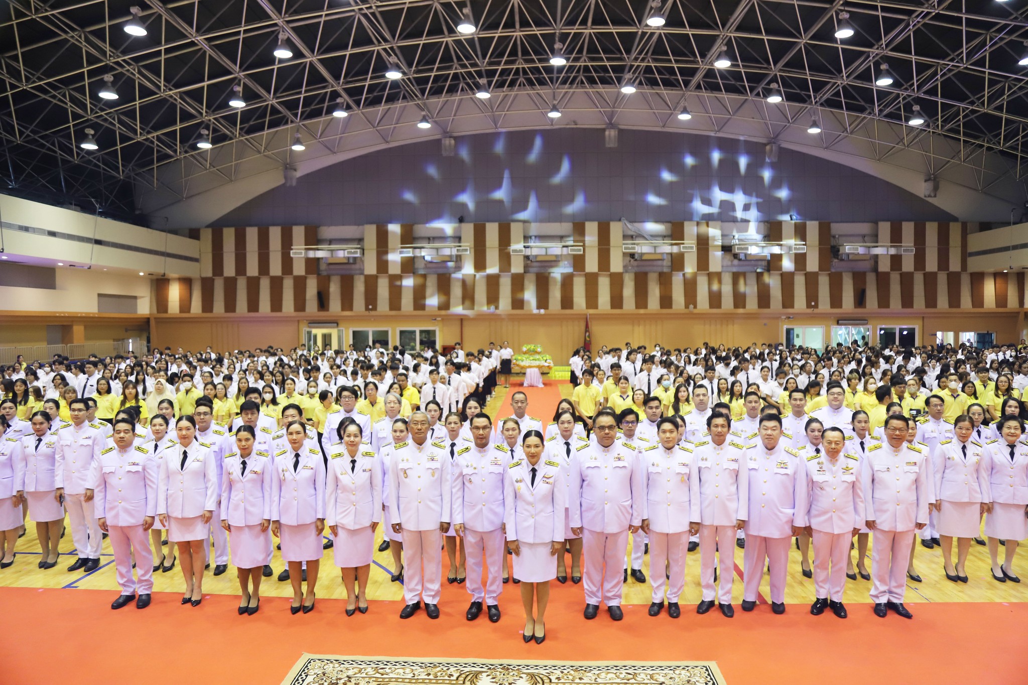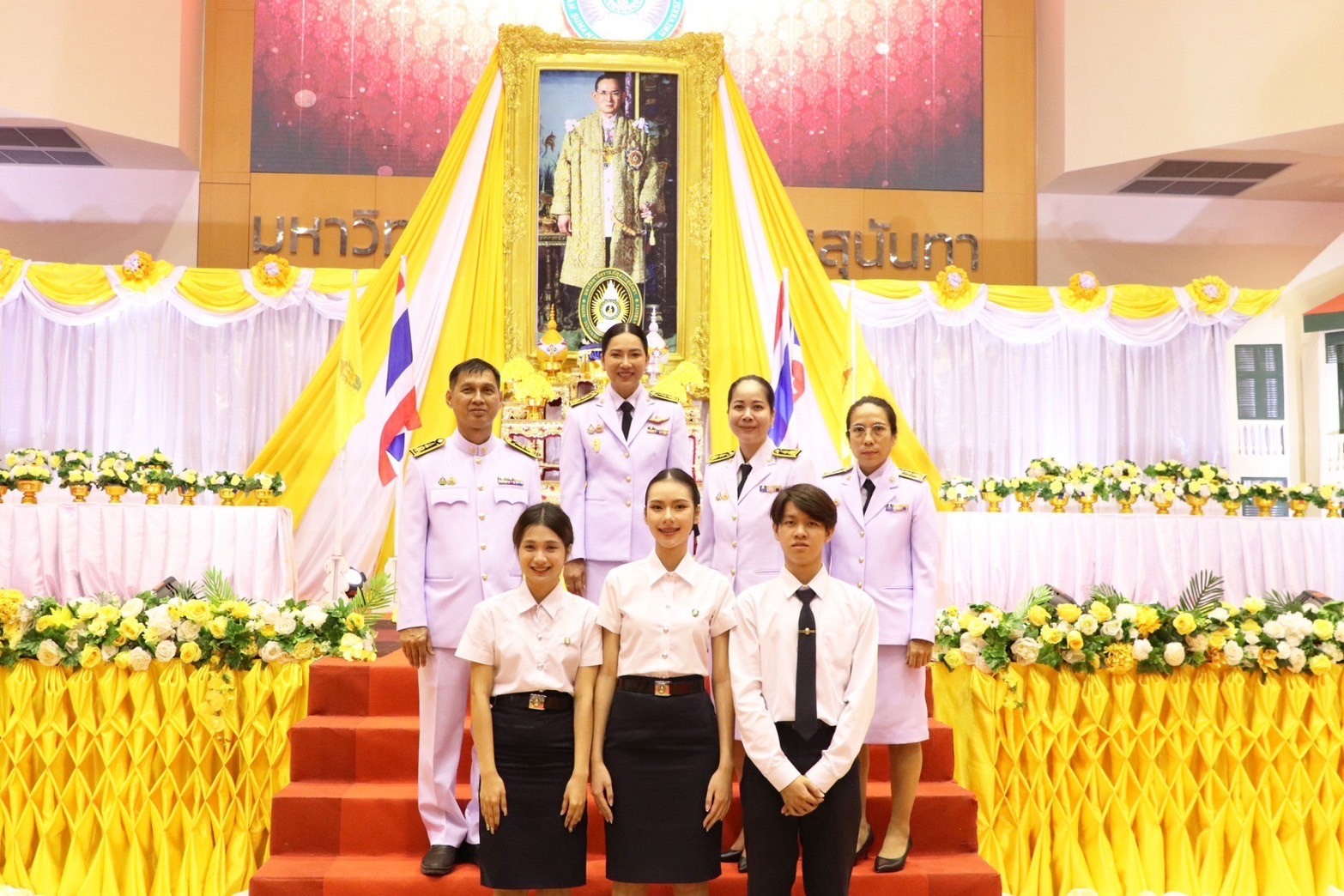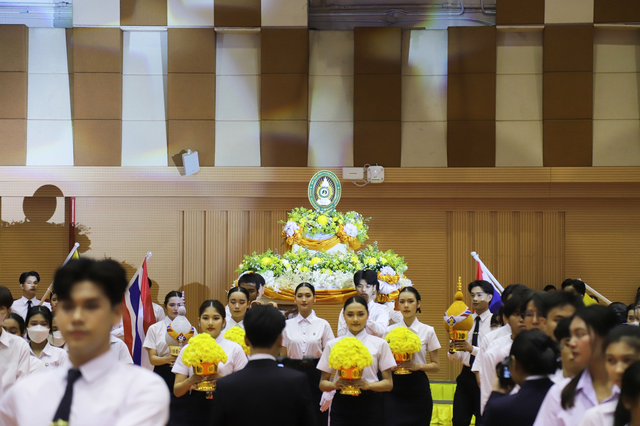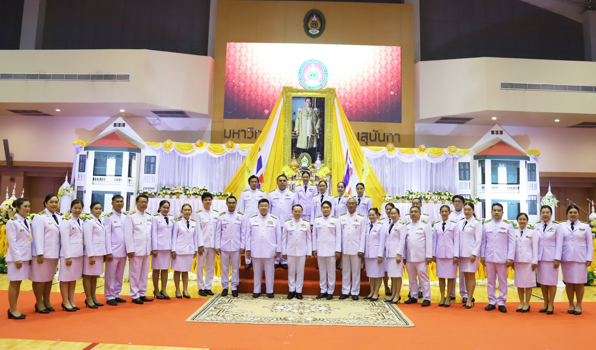 On February 14, 2025, Assistant Professor Dr. Chonmapat Torasa, Dean of the Faculty of Engineering and Industrial Technology, along with Assistant Professor Dr. Khwanchai Sukkon, Deputy Dean for Student Affairs, participated in the ceremony to invite the royal seal of His Majesty King Bhumibol Adulyadej the Great for the academic year 2024, organized by the Student Council, Student Organization, and Student Development Division. Associate Professor Dr. Chutikarn Sriviboon, President of Suan Sunandha Rajabhat University, presided over the ceremony to light the golden tray and pay homage to the portrait of His Majesty King Bhumibol Adulyadej the Great, and Asst.Prof.Dr. Somsak Klaysung, Deputy President for Student Affairs, delivered a speech of royal eulogy at the Suan Sunandha Health and Sports Center Building, 4th floor, Suan Sunandha Rajabhat University. In this regard, there were representatives of students from the Faculty of Engineering and Industrial Technology who joined the ceremony to invite the royal seal of His Majesty King Bhumibol Adulyadej the Great for the academic year 2024, namely: