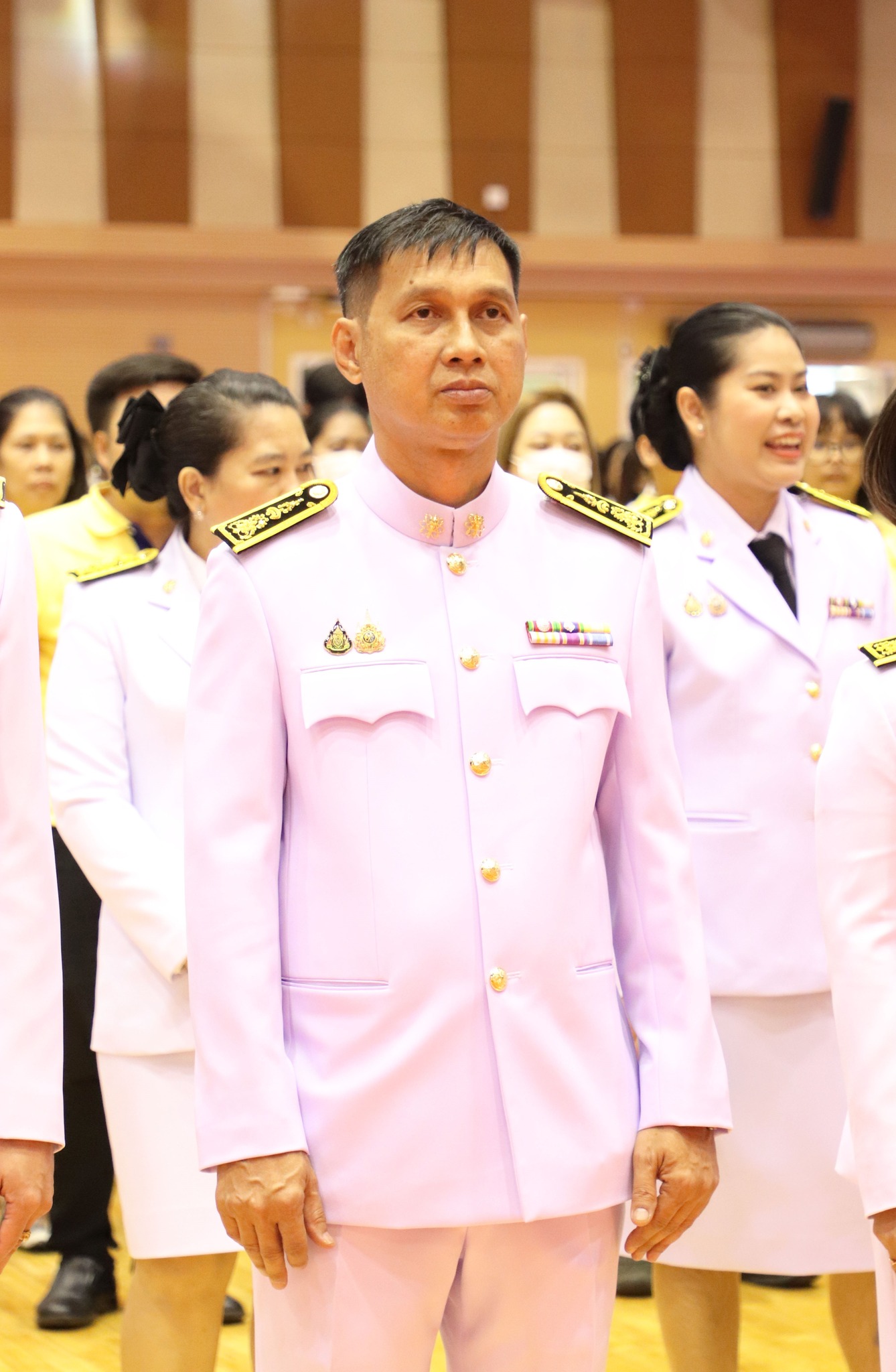 - Mr. Jirachot Phengpan, 1st year student, Faculty of Engineering and Industrial Technology, Department of Computer Engineering, joined the procession to invite the royal seal