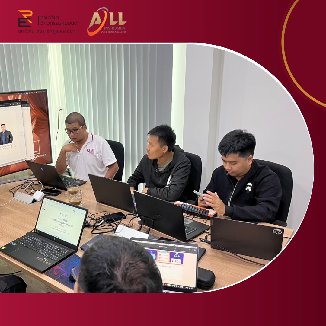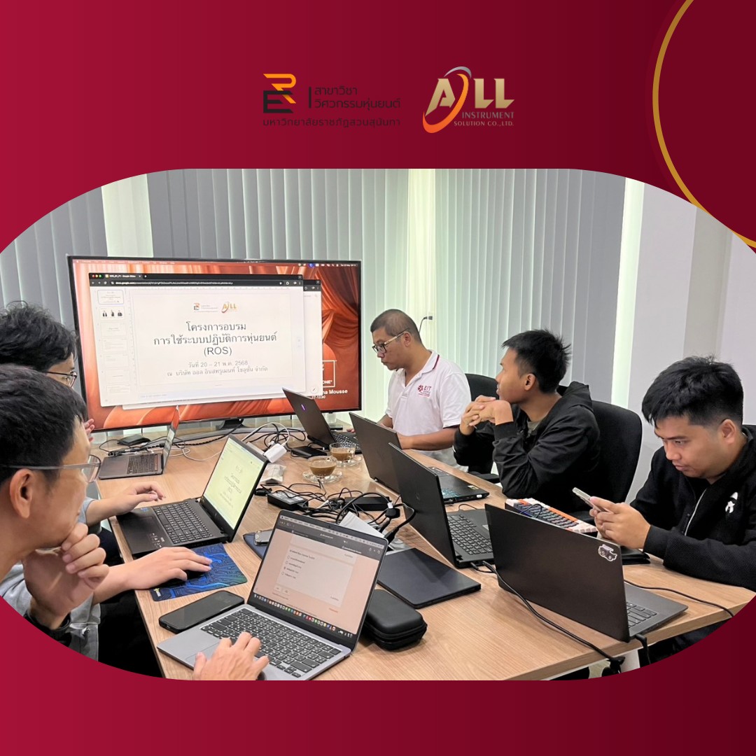 On May 20–21, 2025, Assistant Professor Dr. Sethakarn Prongnuch, Head of the Department of Robotics Engineering; Mr. Kidsada Ittipotirat, Lecturer in the Department of Robotics Engineering; and Mr. Kant Charoenjit, Lecturer in the Department of Computer Engineering, served as speakers in a training program on the use of the Robot Operating System (ROS). The training was held at All Instrument Solution Co., Ltd., with the aim of supporting the reskilling and upskilling of the company's employees in effectively utilizing new technologies in alignment with organizational needs.