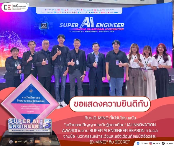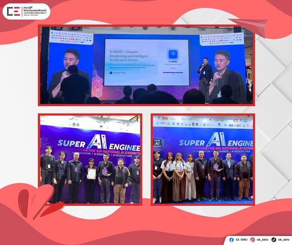 Congratulations to the D-MIND team on receiving the “AI Innovation Award” for Outstanding Artificial Intelligence Innovation at the Super AI Engineer Season 5 event for their project titled “D-MIND: Intelligent Disaster Monitoring and Alert Innovation.”