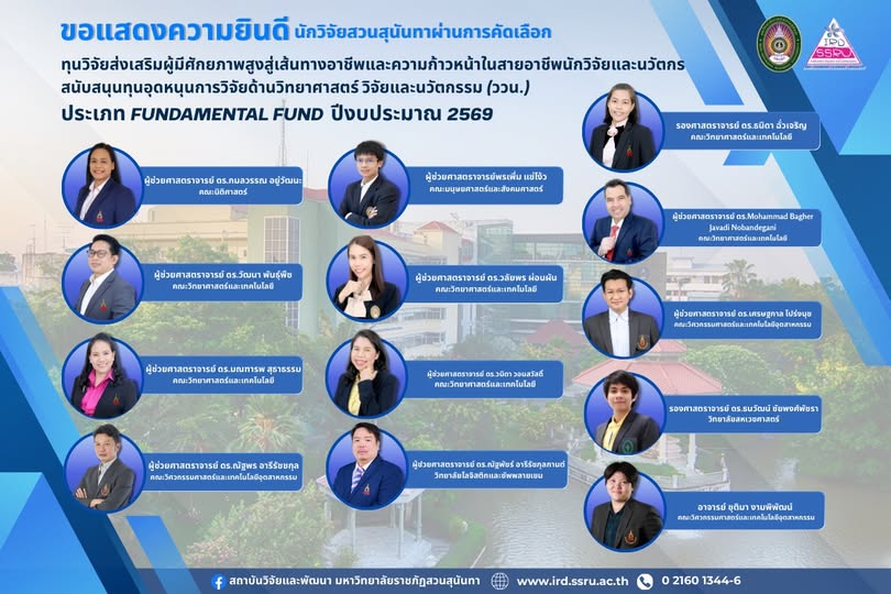 The grants are provided under the sub-program supporting high-potential researchers to advance along professional career pathways and achieve progress in their careers as researchers and innovators, funded by the Office of National Higher Education Science Research and Innovation Policy Council (NXPO).