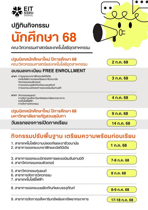> ปฏิทินกิจกรรมนักศึกษาใหม่ ปีการศึกษา 2568