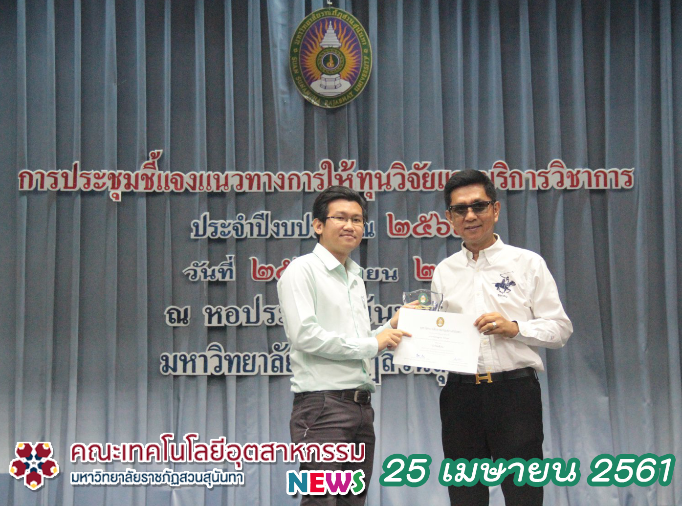 อาจารย์เศรษฐกาล โปร่งนุช หัวหน้าสาขาวิชาวิศวกรรมคอมพิวเตอร์ เข้ารับมอบเกียรติบัตรและโล่เชิดชูเกียรติรางวัลนักวิจัยดีเด่น ประจำปี 2561