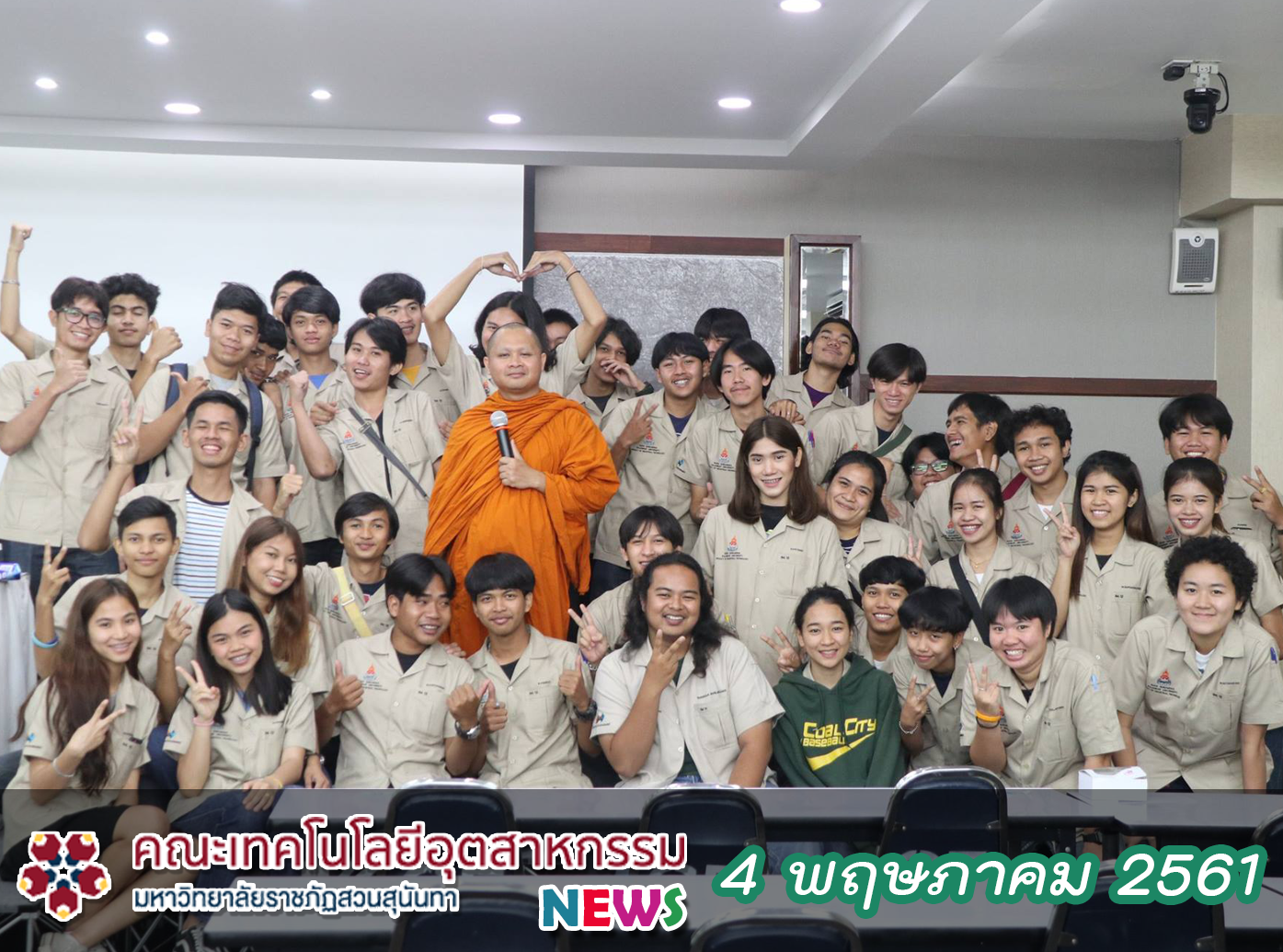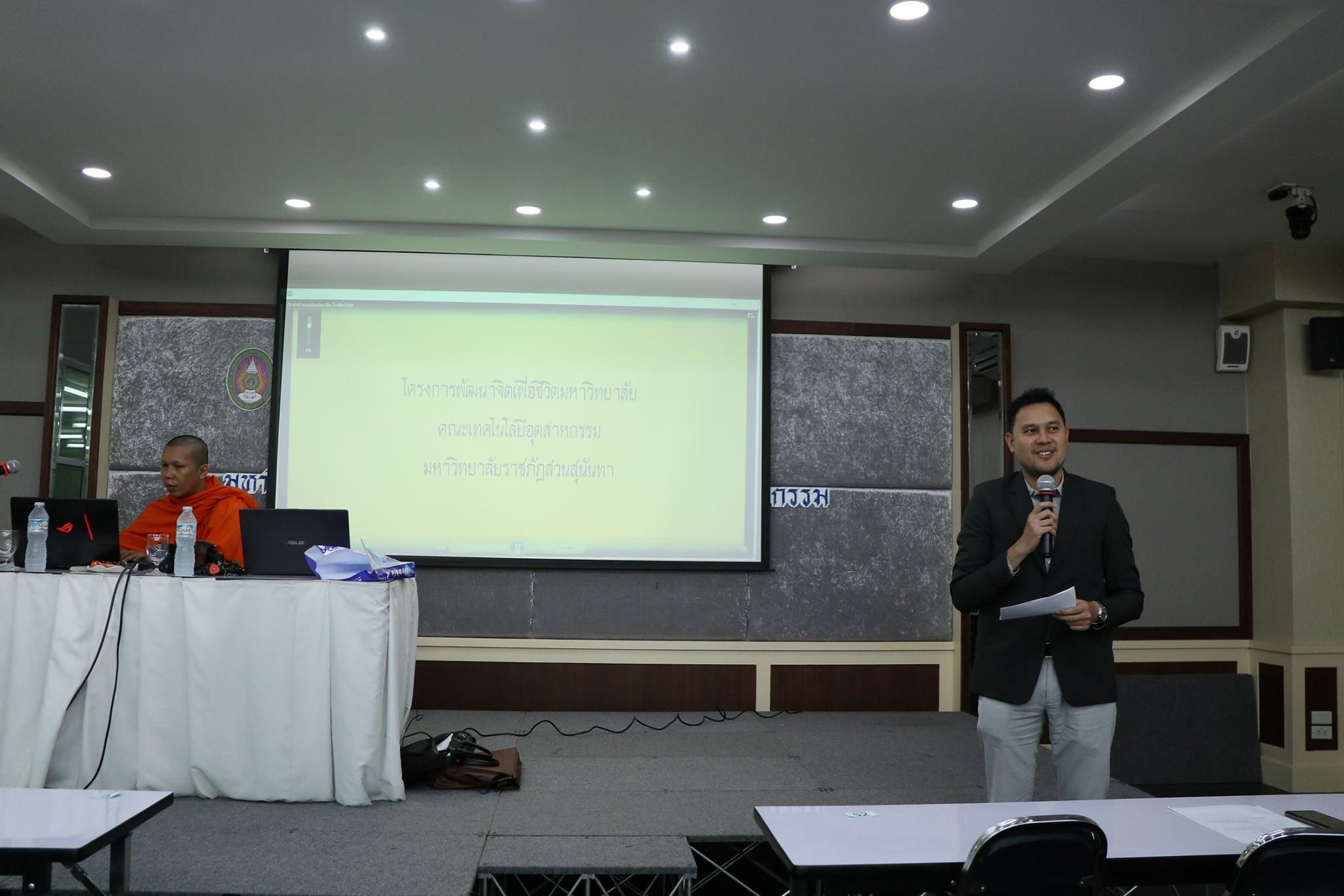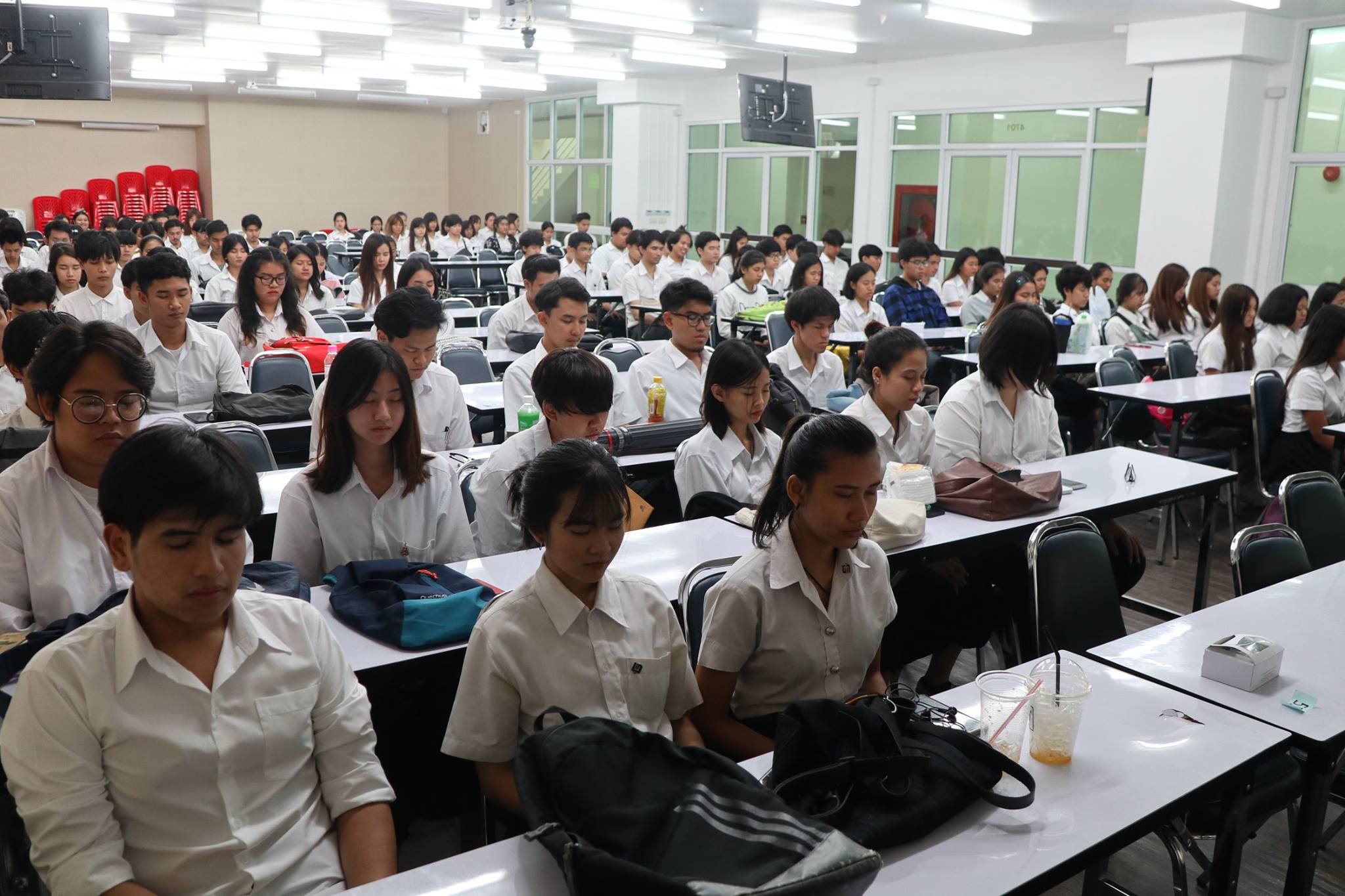 เมื่อวันศุกร์ที่ 4 พฤษภาคม 2561 ฝ่ายกิจการนักศึกษาและศิลปวัฒนธรรม ได้จัดโครงการ “ปฏิบัติธรรมนำสุข” ขึ้น ให้กับนักศึกษาชั้นปีที่ 2 - 3 ทุกสาขาวิชา ณ ห้อง 4701 วัตถุประสงค์เพื่อปลูกฝังจิตสำนึกในการรักความถูกต้องและมีความกล้าหาญทางจริยธรรม เพื่อส่งเสริมและพัฒนานักศึกษาด้านคุณธรรม จริยธรรม ให้มีความซื่อสัตย์สุจริตต่อตนเองและผู้อื่น ทั้งนี้มีนักศึกษาให้ความสนใจในการเข้าร่วมกิจกรรมเป็นจำนวนมาก