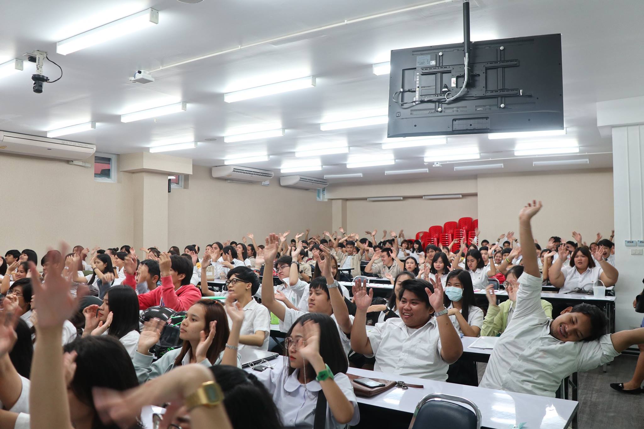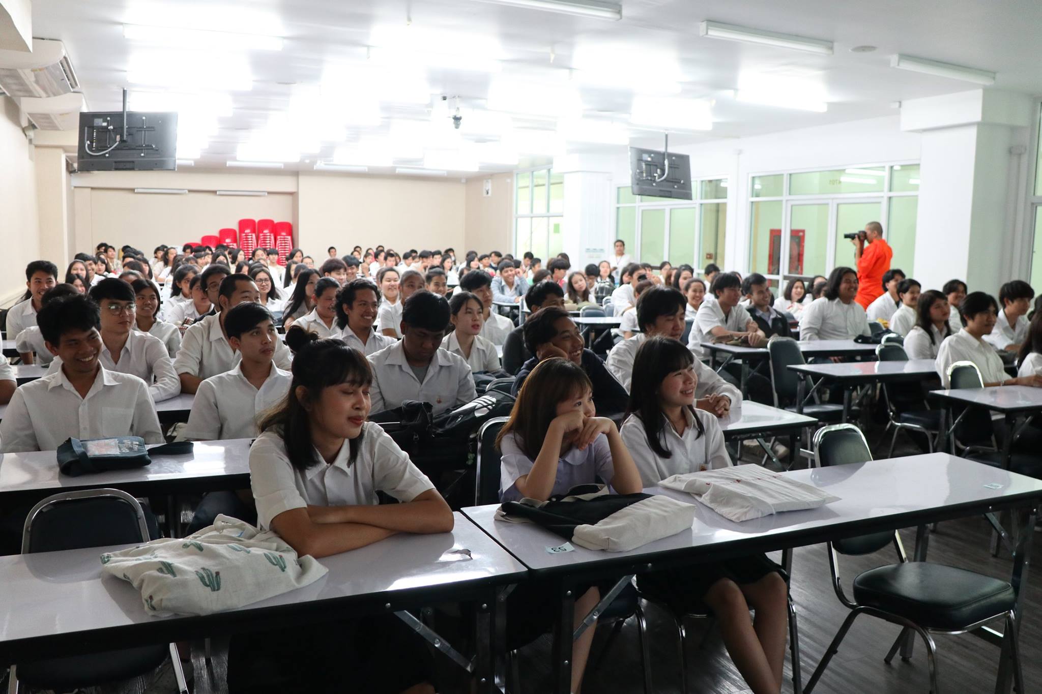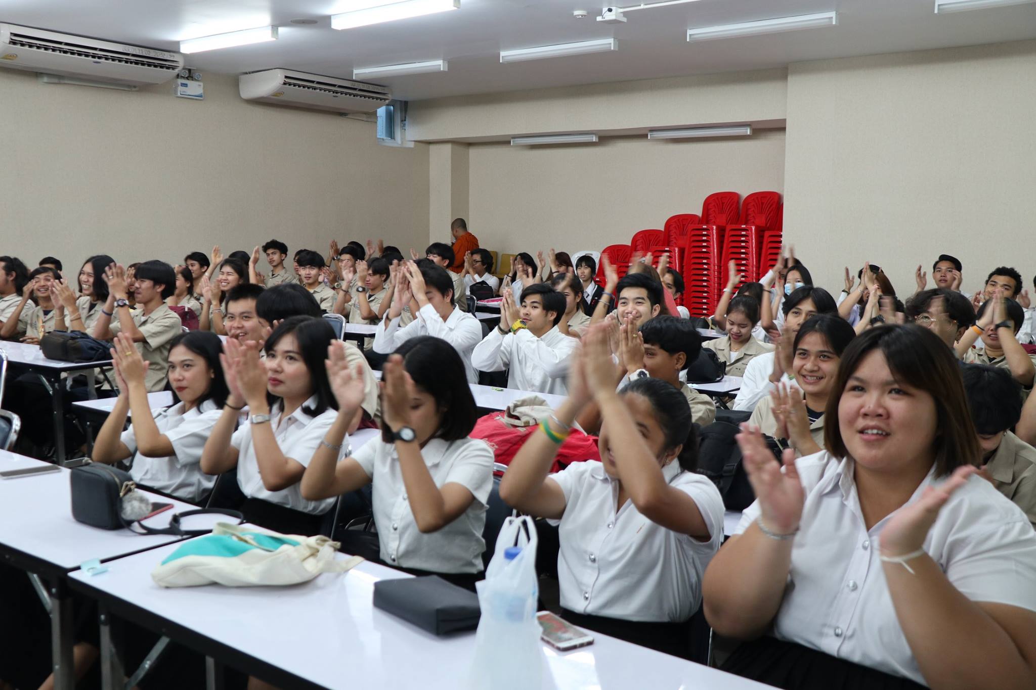 เมื่อวันศุกร์ที่ 4 พฤษภาคม 2561 ฝ่ายกิจการนักศึกษาและศิลปวัฒนธรรม ได้จัดโครงการ “ปฏิบัติธรรมนำสุข” ขึ้น ให้กับนักศึกษาชั้นปีที่ 2 - 3 ทุกสาขาวิชา ณ ห้อง 4701 วัตถุประสงค์เพื่อปลูกฝังจิตสำนึกในการรักความถูกต้องและมีความกล้าหาญทางจริยธรรม เพื่อส่งเสริมและพัฒนานักศึกษาด้านคุณธรรม จริยธรรม ให้มีความซื่อสัตย์สุจริตต่อตนเองและผู้อื่น ทั้งนี้มีนักศึกษาให้ความสนใจในการเข้าร่วมกิจกรรมเป็นจำนวนมาก