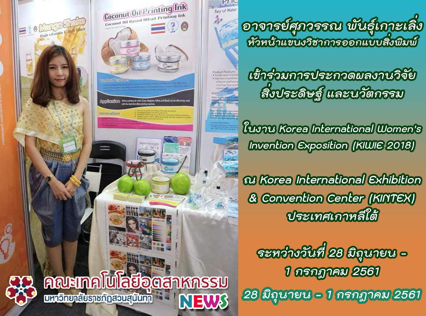 อาจารย์ศุภวรรณ พันธุ์เกาะเลิ่ง นำผลงานจากการวิจัย เรื่อง Coconut-oil Printing Ink เข้าร่วมการประกวดผลงานวิจัย สิ่งประดิษฐ์ และนวัตกรรม