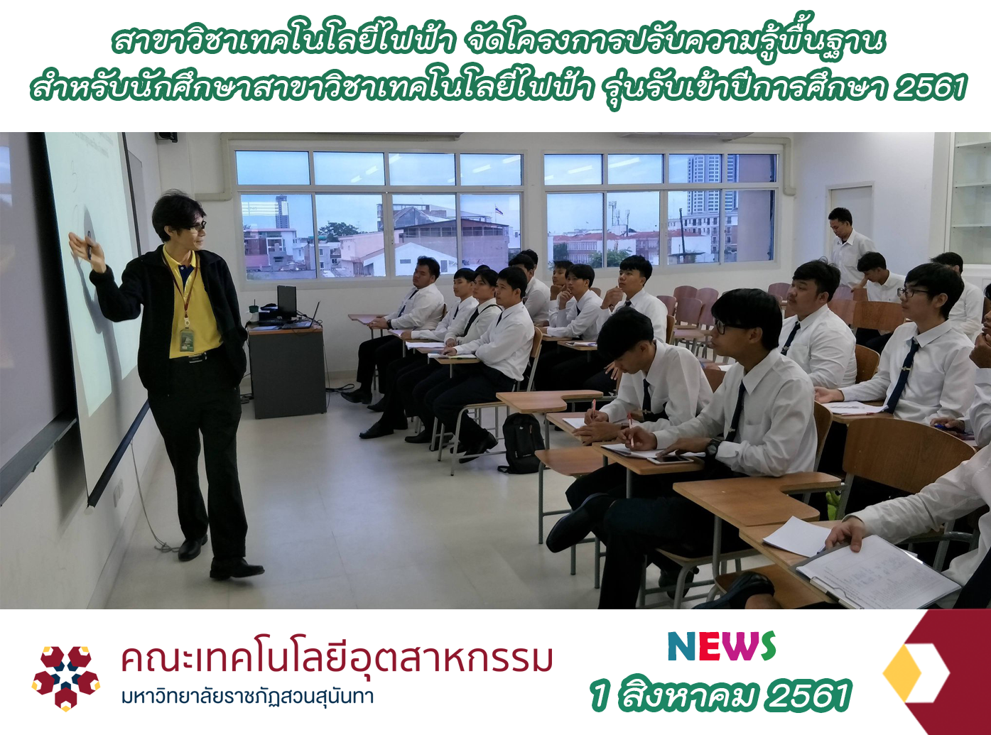 สาขาวิชาเทคโนโลยีไฟฟ้า จัดโครงการปรับความรู้พื้นฐานสำหรับนักศึกษาสาขาวิชาเทคโนโลยีไฟฟ้า รุ่นรับเข้าปีการศึกษา 2561