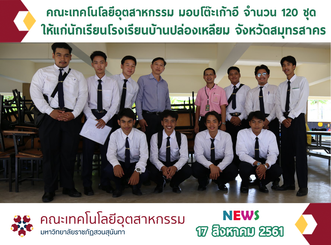 คณะเทคโนโลยีอุตสาหกรรม มอบโต๊ะเก้าอี จำนวน 120 ชุด ให้แก่นักเรียนโรงเรียนบ้านปล่องเหลี่ยม จังหวัดสมุทรสาคร