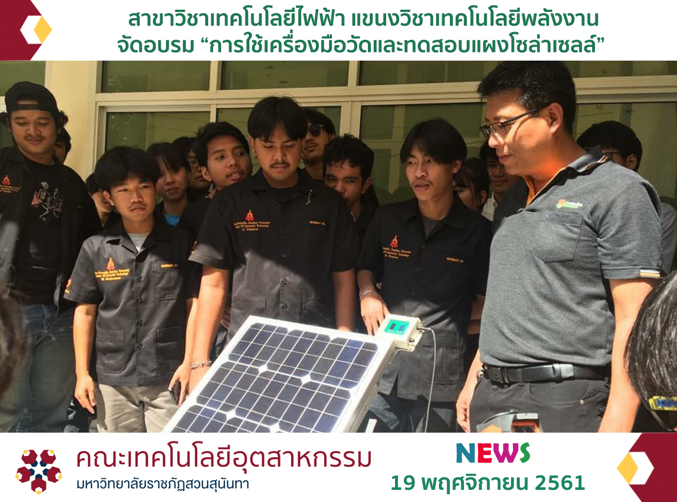 สาขาวิชาเทคโนโลยีไฟฟ้า แขนงวิชาเทคโนโลยีพลังงาน จัดอบรม “การใช้เครื่องมือวัดและทดสอบแผงโซล่าเซลล์”