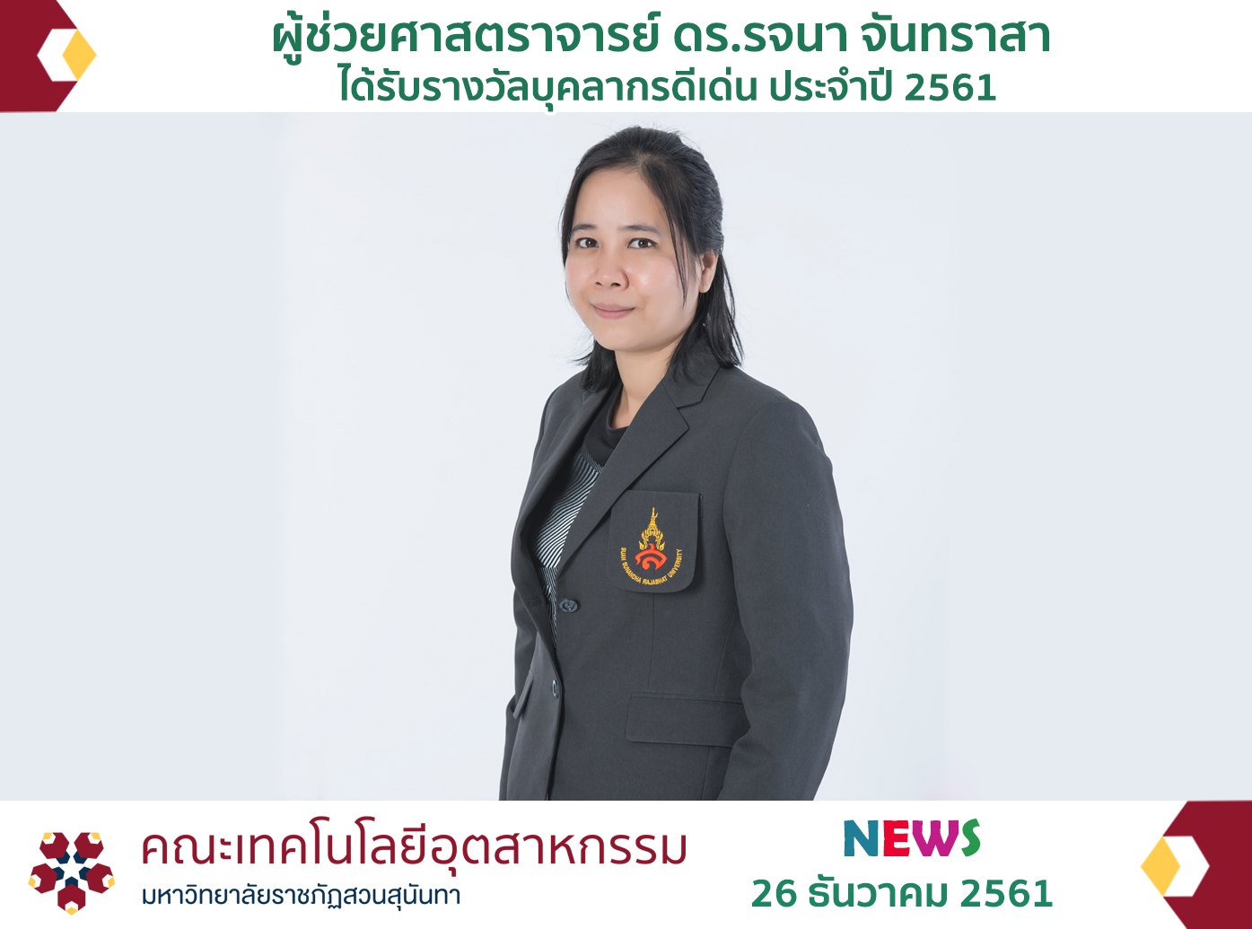ผู้ช่วยศาสตราจารย์ ดร.รจนา จันทราสา ได้รับรางวัลบุคลากรดีเด่น ประจำปี 2561 ได้รับรางวัลบุคลากรดีเด่น ประจำปี 2561