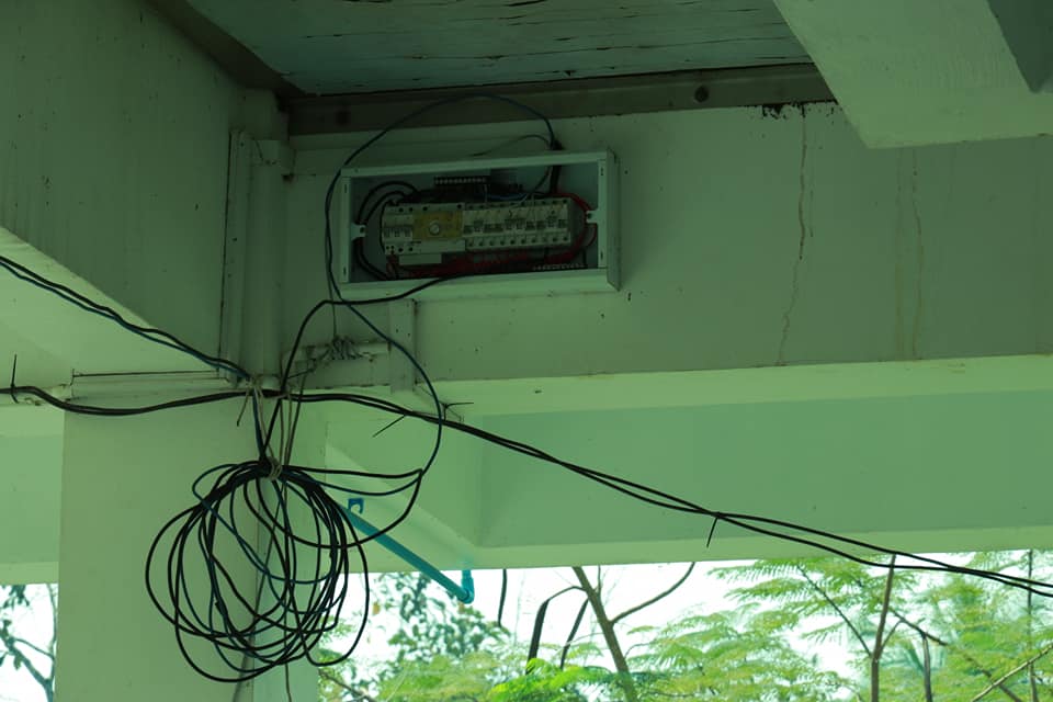 นักศึกษาสาขาวิชาเทคโนโลยีไฟฟ้าอุตสาหกรรม สำรวจหน้างานเพื่อติดตั้งระบบไฟฟ้า ไฟฟ้าพลังงานแสงอาทิตย์ ระบบเสียงและการนำเสนอ เพื่อสนับสนุนศูนย์เรียนรู้และวิจัยเห็ดครบวงจร ศูนย์เรียนรู้เศรษฐกิจพอเพียง บ้านสารภี สมุทรสงคราม ภายใต้โครงการวิจัยของราชภัฏสวนสุนันทา โดยการนำของ รศ.ดร.วิทยา เมฆขำ