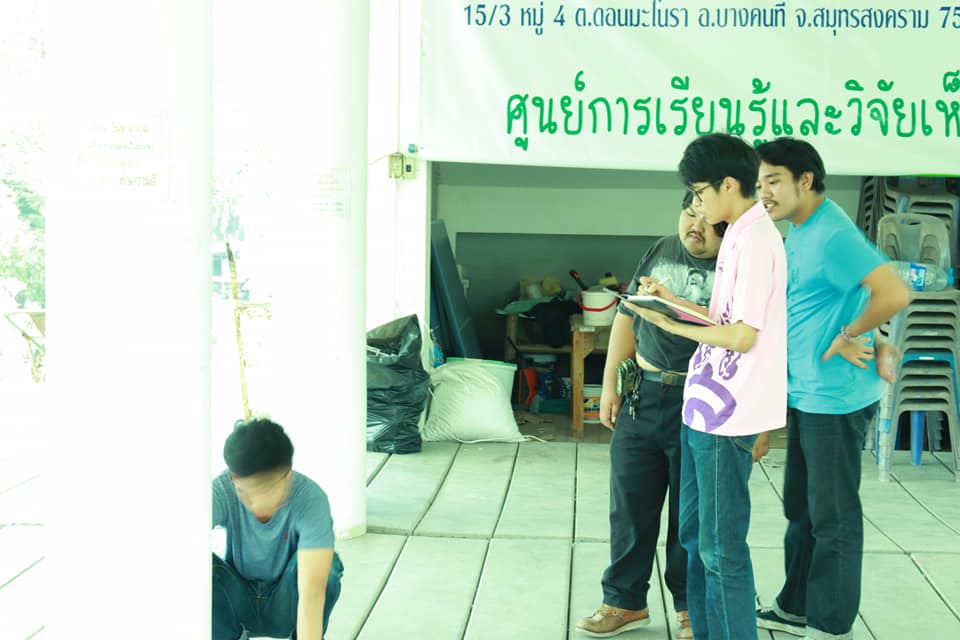 น.ศ. เทคโนโลยีไฟฟ้าอุตสาหกรรม สำรวจหน้างานเพื่อติดตั้งระบบไฟฟ้า ไฟฟ้าพลังงานแสงอาทิตย์ เพื่อสนับสนุนศูนย์เรียนรู้และวิจัยเห็ดครบวงจร ศูนย์เรียนรู้เศรษฐกิจพอเพียง บ้านสารภี สมุทรสงคราม