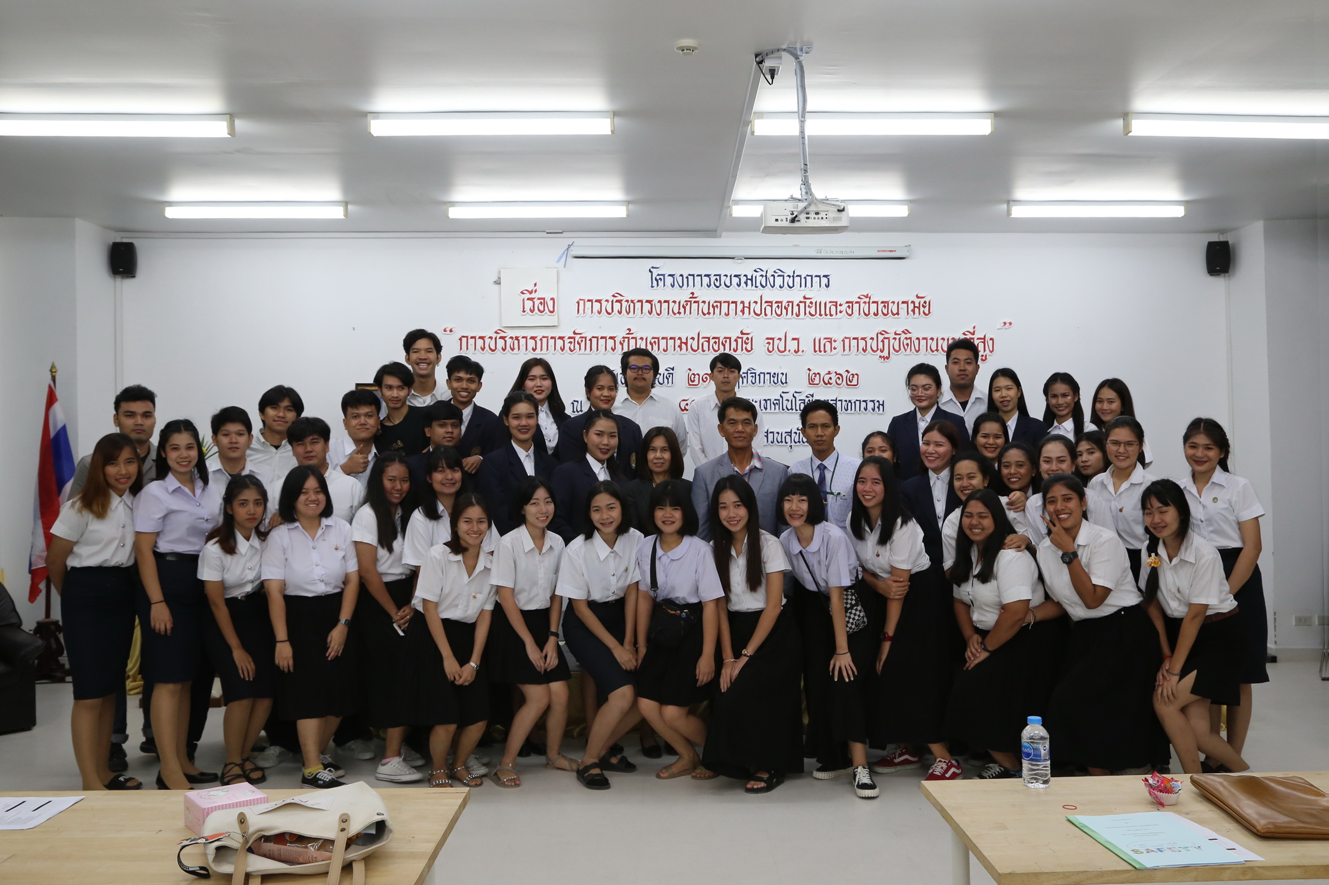 เมื่อวันที่ 21 พฤศจิกายน 2562 เวลา 08.00 – 17.30 น. สาขาวิชาเทคโนโลยีความปลอดภัยและอาชีวอนามัย คณะเทคโนโลยีอุตสาหกรรม จัดโครงการอบรมเชิงวิชาการ เรื่อง การบริหารงานด้านความปลอดภัยและอาชีวอนามัยในสถานประกอบการ ให้กับนักศึกษาชั้นปีที่ 3 และ ชั้นปีที่ 4 สาขาวิชาเทคโนโลยีความปลอดภัยและอาชีวอนามัย ณ ห้องกิจกรรมชั้น 1 อาคาร 42 ซึ่งได้รับเกียรติจากวิทยากร 2 ท่าน ดังนี้