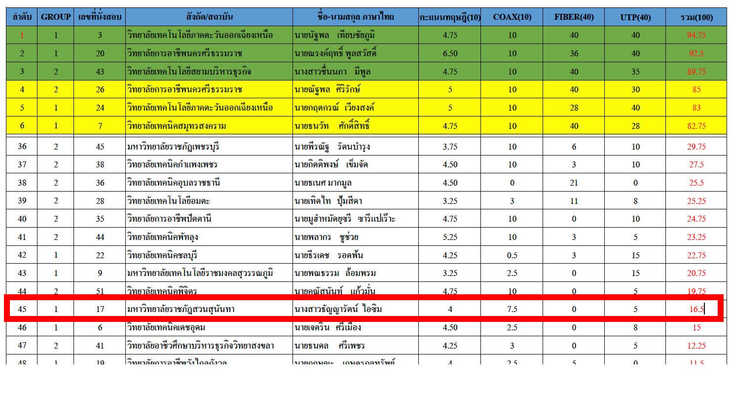 ขอแสดงความยินดีกับ นางสาวธัญญารัตน์ ไอซิม นักศึกษา สาขาวิชาวิศวกรรมคอมพิวเตอร์ ชั้นปีที่ 2 คณะเทคโนโลยีอุตสาหกรรม มหาวิทยาลัยราชภัฏสวนสุนันทา ได้ลำดับที่ 45 ของประเทศไทย ในการแข่งขันทักษะฝีมือสายสัญญาณปี 7 ชิงถ้วยพระราชทาน “Cabling Contest 2019” สุดยอดเวทีการแข่งขันยกระดับฝีมือสู่เวทีระดับโลก ในวันที่ 23 พฤศจิกายน 2562 ณ ชลพฤกษ์รีสอร์ท อำเภอบ้านนา จังหวัดนครนายก