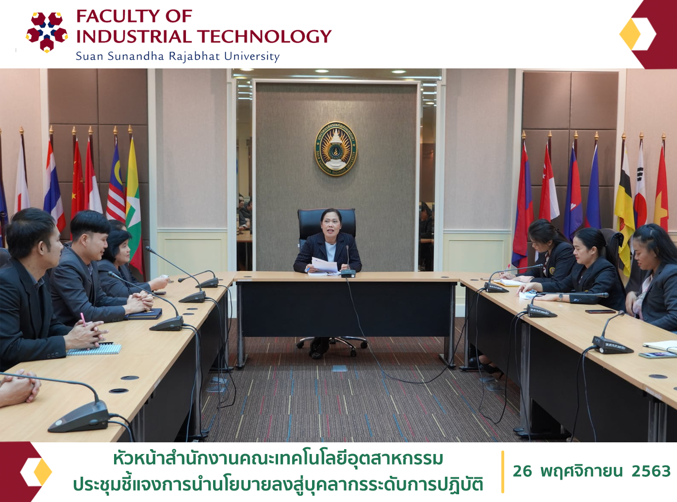 หัวหน้าสำนักงานคณะเทคโนโลยีอุตสาหกรรม ประชุมชี้แจงการนำนโยบายลงสู่บุคลากรระดับการปฏิบัติ