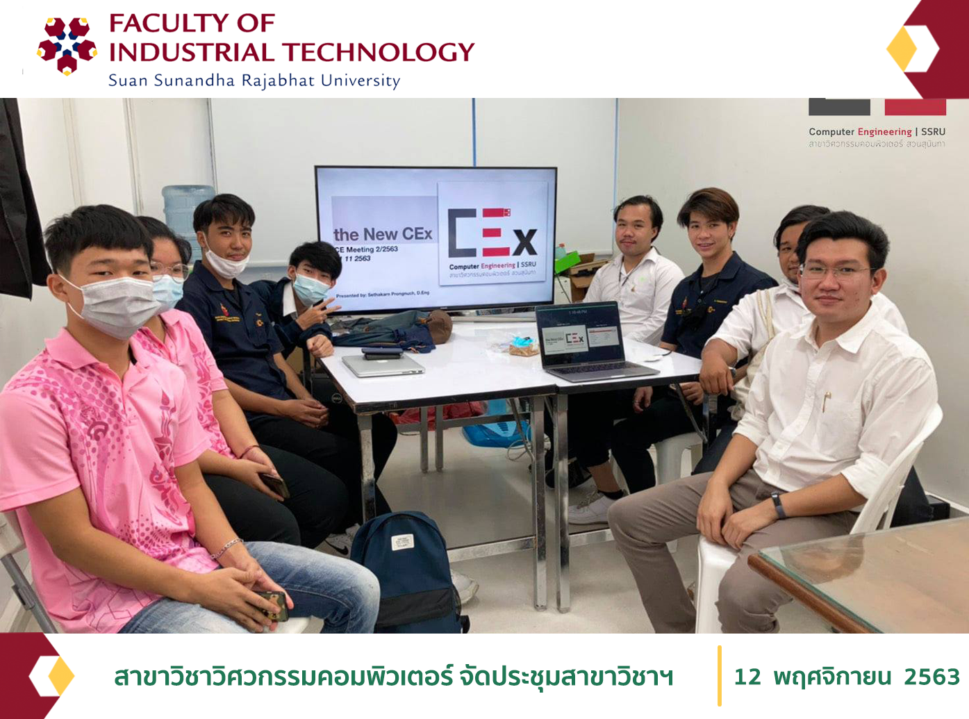 วันที่ 12 พฤศจิกายน 2563 สาขาวิชาวิศวกรรมคอมพิวเตอร์ จัดประชุมสาขาวิชาฯ โดยมี อาจารย์ ดร.เศรษฐกาล โปร่งนุช หัวหน้าสาขาวิชาฯ เป็นประธาน มีตัวแทนจากนักศึกษาแต่ละชั้นปี เป็นคณะกรรมการในที่ประชุม เพื่อหารือเกี่ยวกับ การประชาสัมพันธ์สาขาวิชาฯ ปี 63-64 งบประมาณสาขาวิชาฯ โครงการต่างๆ ของสาขาวิชาฯ ทุนการศึกษา ทีมประชาสัมพันธ์สาขาวิชาฯ ปี 2564 ห้องปฏิบัติการ Robot งบแผ่นดิน ปี 65 SSRU Open House สำหรับผู้สนใจเข้าศึกษาในปีการศึกษา 2564 บัญชีของสาขาวิชาฯ และเรื่องอื่นๆ
