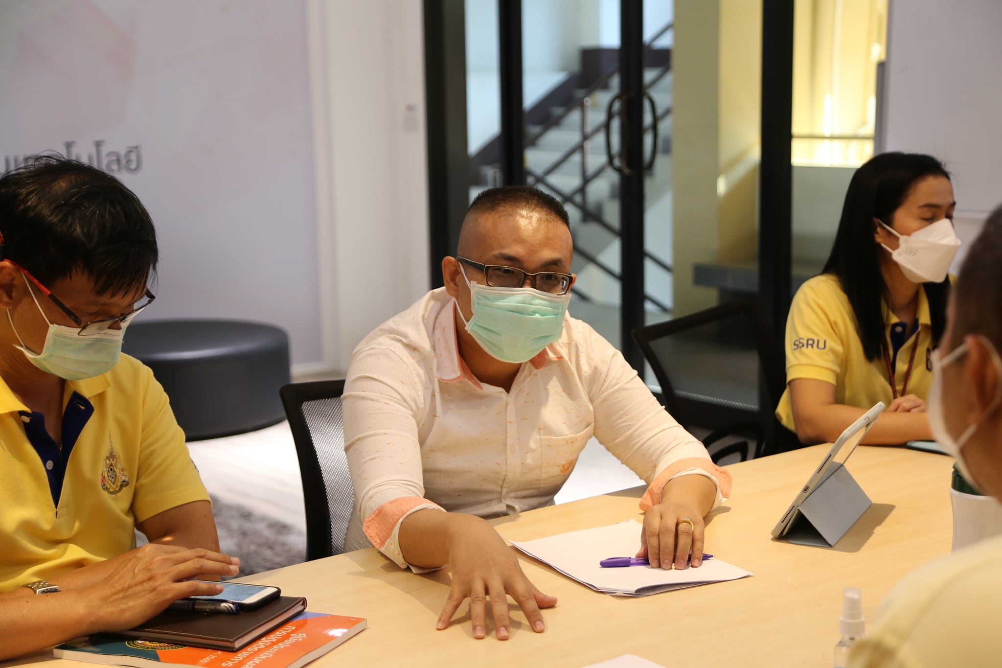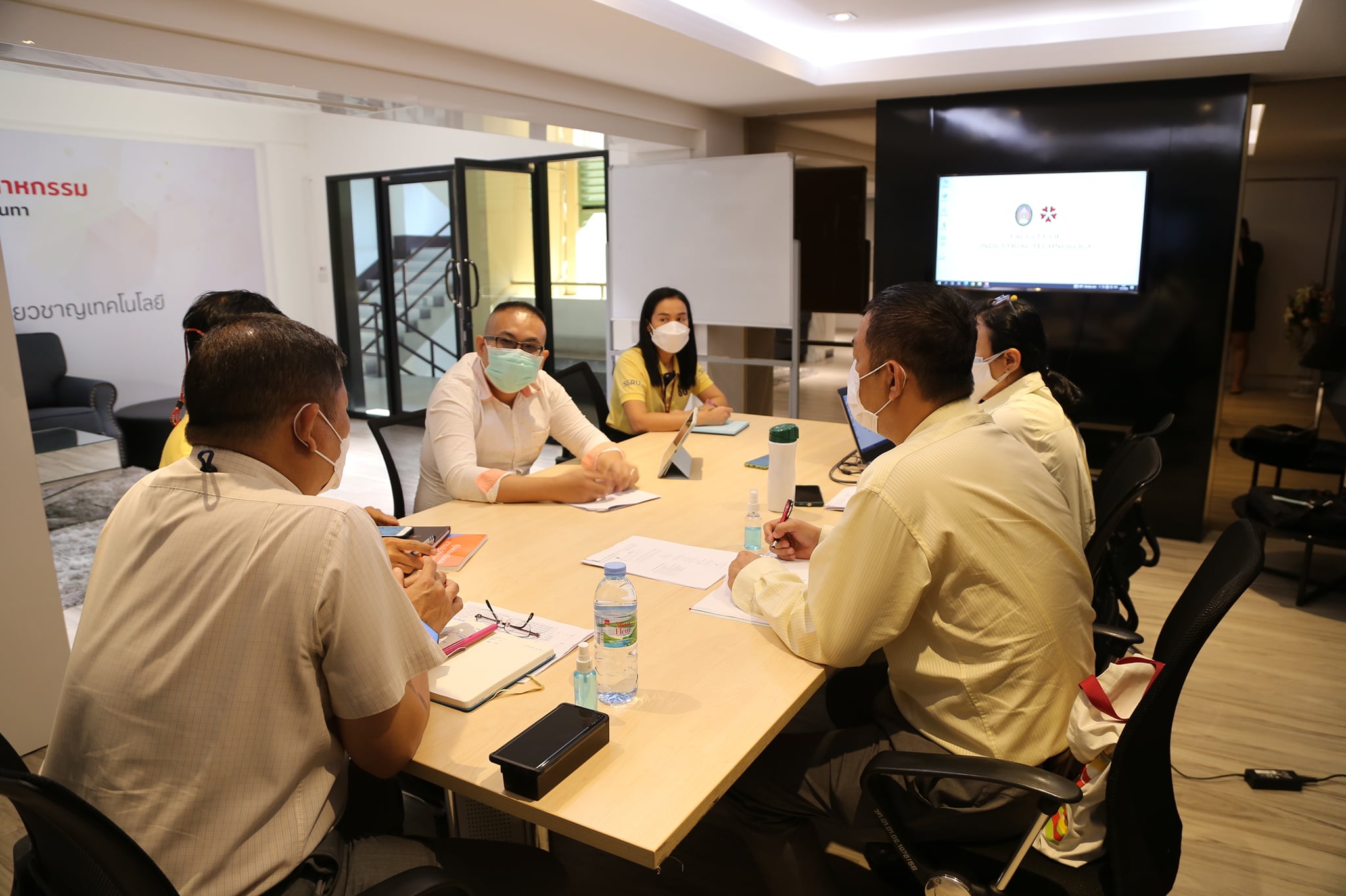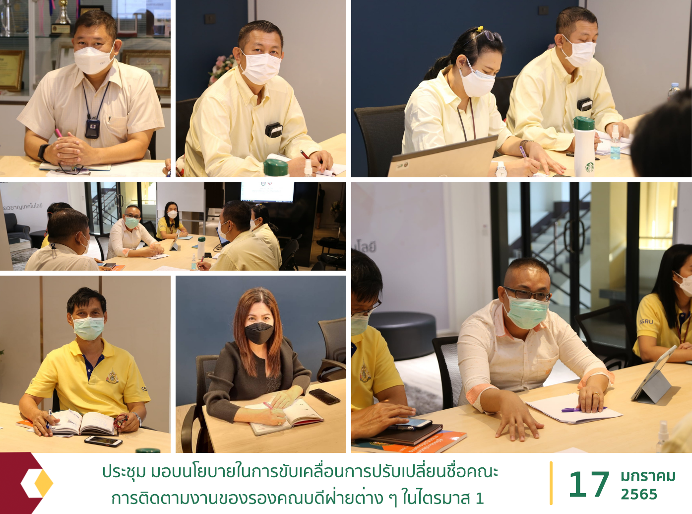 ผู้ช่วยศาสตราจารย์ ดร. สุรพันธุ์ รัตนาวะดี คณบดีคณะเทคโนโลยีอุตสาหกรรม ประธานการประชุม มอบนโยบายในการขับเคลื่อนการปรับเปลี่ยนชื่อคณะ การติดตามงานของรองคณบดีฝ่ายต่าง ๆ ในไตรมาส 1 และเตรียมความพร้อมในการสัมภาษณ์การรับสมัครนักศึกษาใหม่ ประจำปีการศึกษา 2565 รอบที่ 1 Portfolio ณ ห้อง Lounge room อเนกประสงค์อาคาร 42 ชั้น 2 คณะเทคโนโลยีอุตสาหกรรม มหาวิทยาลัยราชภัฏสวนสุนันทา