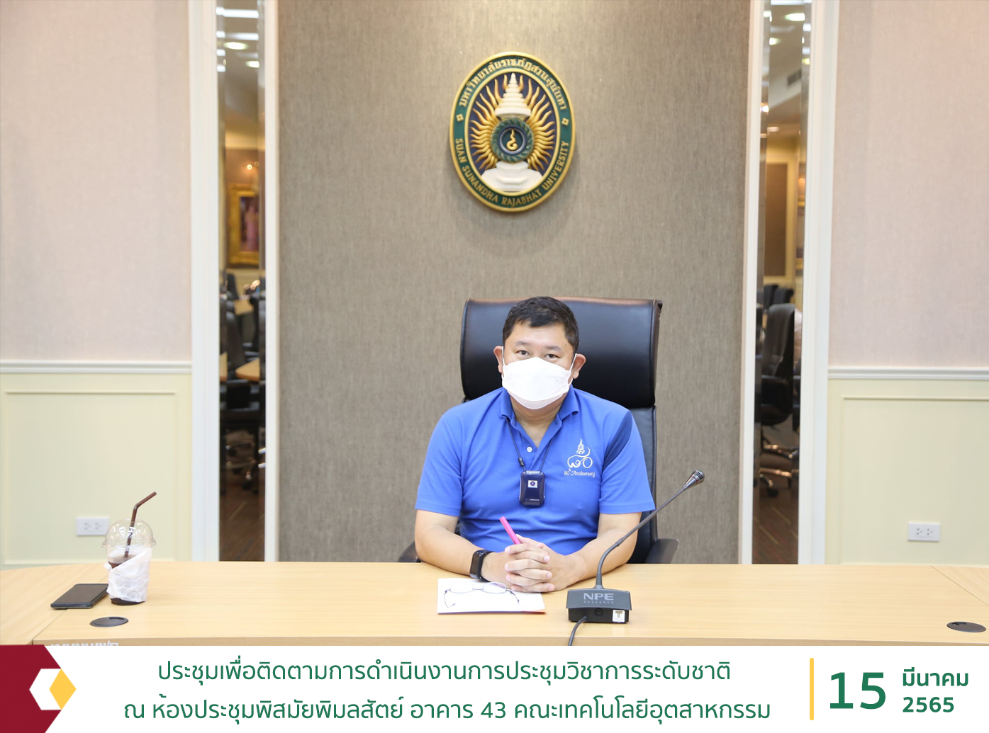 วันที่ 15 มีนาคม 2565 ผู้ช่วยศาสตราจารย์ ดร.สุรพันธุ์ รัตนาวะดี คณบดี พร้อมด้วยรองคณบดี หัวหน้าสำนักงาน และเจ้าหน้าที่ คณะเทคโนโลยีอุตสาหกรรม เข้าร่วมการประชุมเพื่อติดตามการดำเนินงานการประชุมวิชาการระดับชาติ ณ ห้องประชุมพิสมัยพิมลสัตย์ อาคาร 43 คณะเทคโนโลยีอุตสาหกรรม มหาวิทยาลัยราชภัฏสวนสุนันทา