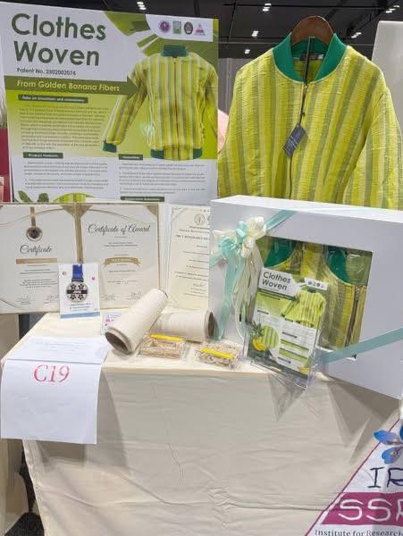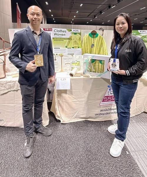 ผลงานวิจัยเรื่อง “Clothes woven from golden banana fibers” โดย รองศาสตราจารย์ ดร.รจนา จันทราสา และ อาจารย์ ดร.ภานุ พัฒนปณิธิพงศ์ อาจารย์ประจำ คณะวิศวกรรมศาสตร์และเทคโนโลยีอุตสาหกรรม คว้ารางวัล เหรียญทอง (Gold Medal) จากการประกวดผลงานนวัตกรรมในเวทีนานาชาติ ซึ่งสะท้อนศักยภาพด้านงานวิจัยและนวัตกรรมของมหาวิทยาลัยราชภัฏสวนสุนันทา ที่สามารถสร้างมูลค่าเพิ่มให้กับทรัพยากรธรรมชาติ และต่อยอดสู่ผลิตภัณฑ์ที่เป็นมิตรต่อสิ่งแวดล้อมและตอบโจทย์เศรษฐกิจสร้างสรรค์