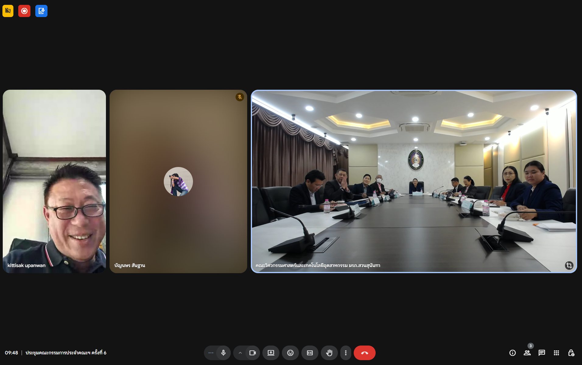 วันที่ 26 สิงหาคม 2568 ผู้ช่วยศาสตราจารย์ ดร.ชนมภัทร โตระสะ คณบดีคณะวิศวกรรมศาสตร์และเทคโนโลยีอุตสาหกรรม พร้อมด้วยคณะกรรมการคณะวิศวกรรมศาสตร์และเทคโนโลยีอุตสาหกรรม เข้าประชุมคณะกรรมการประจำคณะฯ ครั้งที่ 6/2568 โดยมีรองศาสตราจารย์ ดร.ชุติกาญจน์ ศรีวิบูลย์ อธิการบดีมหาวิทยาลัยราชภัฏสวนสุนันทา เป็นประธานการประชุม ณ ห้องประชุมสำนักงานอธิการบดี ชั้น 5 อาคาร 32 มหาวิทยาลัยราชภัฏสวนสุนันทา และผ่านระบบออนไลน์ Google Meet
