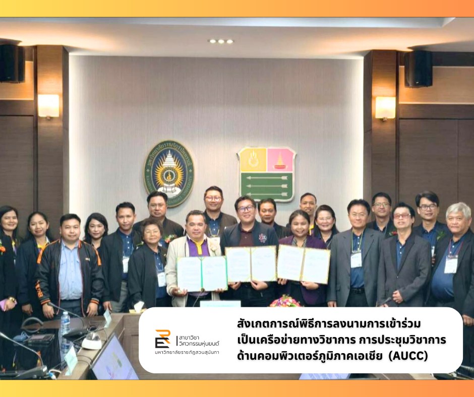 วันที่ 4 กุมภาพันธ์ 2569 อาจารย์ทักษอร อักษรศิลป์ อาจารย์ประจำสาขาวิชาวิศวกรรมหุ่นยนต์ และอาจารย์กานต์ เจริญจิตร อาจารย์ประจำสาขาวิชาวิศวกรรมคอมพิวเตอร์ ได้รับเชิญให้เข้าร่วม สังเกตการณ์พิธีลงนามการเข้าร่วมเป็นเครือข่ายทางวิชาการ ของการประชุมวิชาการด้านคอมพิวเตอร์ระดับภูมิภาคเอเชีย Asia Undergraduate Conference on Computing ณ มหาวิทยาลัยราชภัฏรำไพพรรณี จังหวัดจันทบุรี