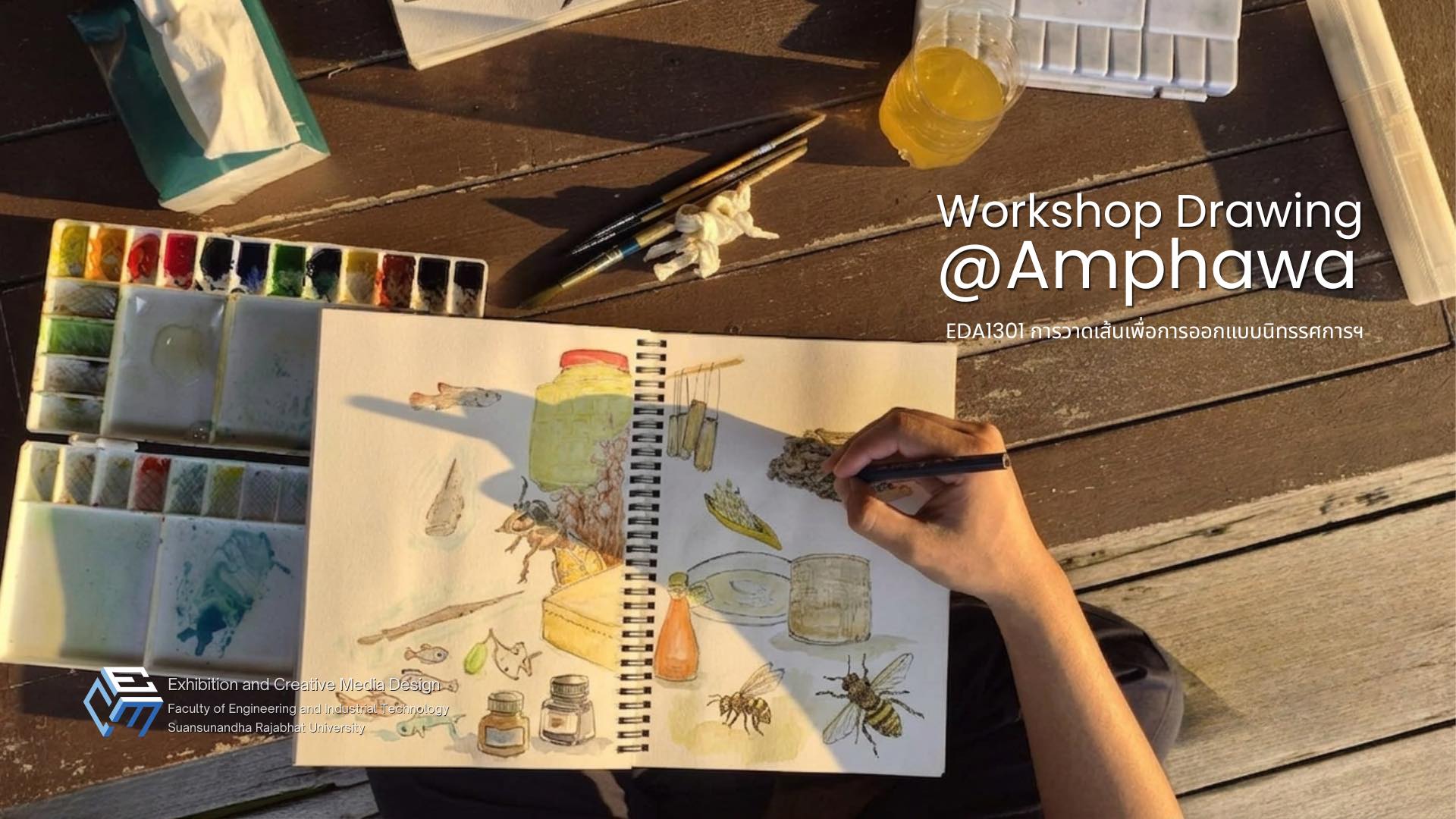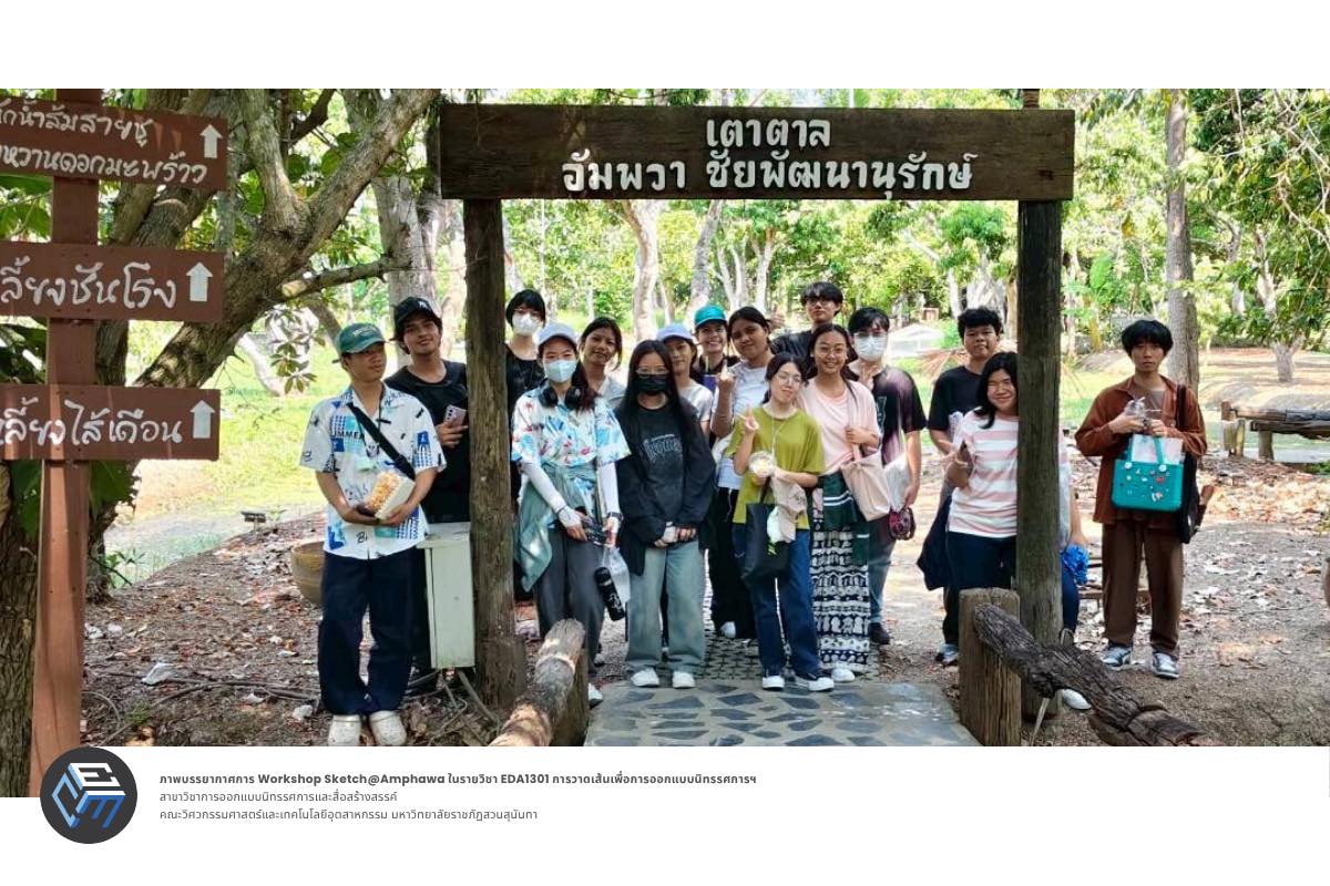 วันที่ 25–26 มีนาคม 2569 นำโดยอาจารย์ ดร.ณัฐพนธ์ อนุสรณ์ทรางกูร และอาจารย์ในสาขาการออกแบบนิทรรศการและสื่อสร้างสรรค์ได้พานักศึกษาชั้นปีที่ 1 ลงพื้นที่อัมพวา จ.สมุทรสงคราม เพื่อศึกษาเรียนรู้ ฝึกสังเกตและถ่ายทอดบรรยากาศในสถานที่จริงในตลาดน้ำอัมพวา, โครงการอัมพวาชัยพัฒนานุรักษ์, และอุทยาน ร.2 ผ่านการวาดเส้นและสีน้ำในสไตล์งานออกแบบ ซึ่งการลงพื้นที่ในครั้งนี้เป็นส่วนหนึ่งของรายวิชาการวาดเส้นเพื่อการออกแบบนิทรรศการและสื่อสร้างสรรค์