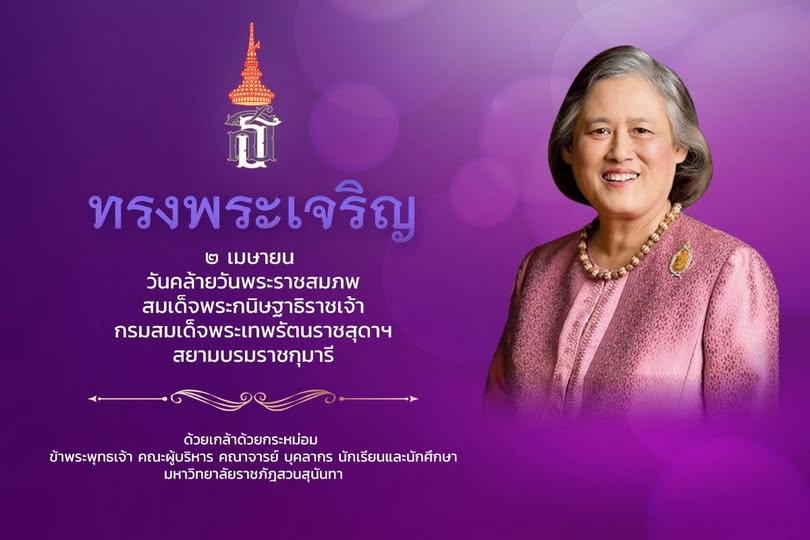 2 เมษายน วันคล้ายวันพระราชสมภพ สมเด็จพระกนิษฐาธิราชเจ้า กรมสมเด็จพระเทพรัตนราชสุดาฯ สยามบรมราชกุมารี