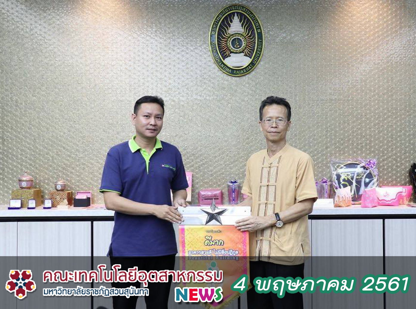 นายชีวิน ชินดิลกวณิช เข้ารับมอบธงรางวัลระดับ ดีเยี่ยม ที่มีการรักษาความสะอาดและเรียบร้อยของอาคารได้อย่างมีประสิทธิภาพ (อาคาร47)