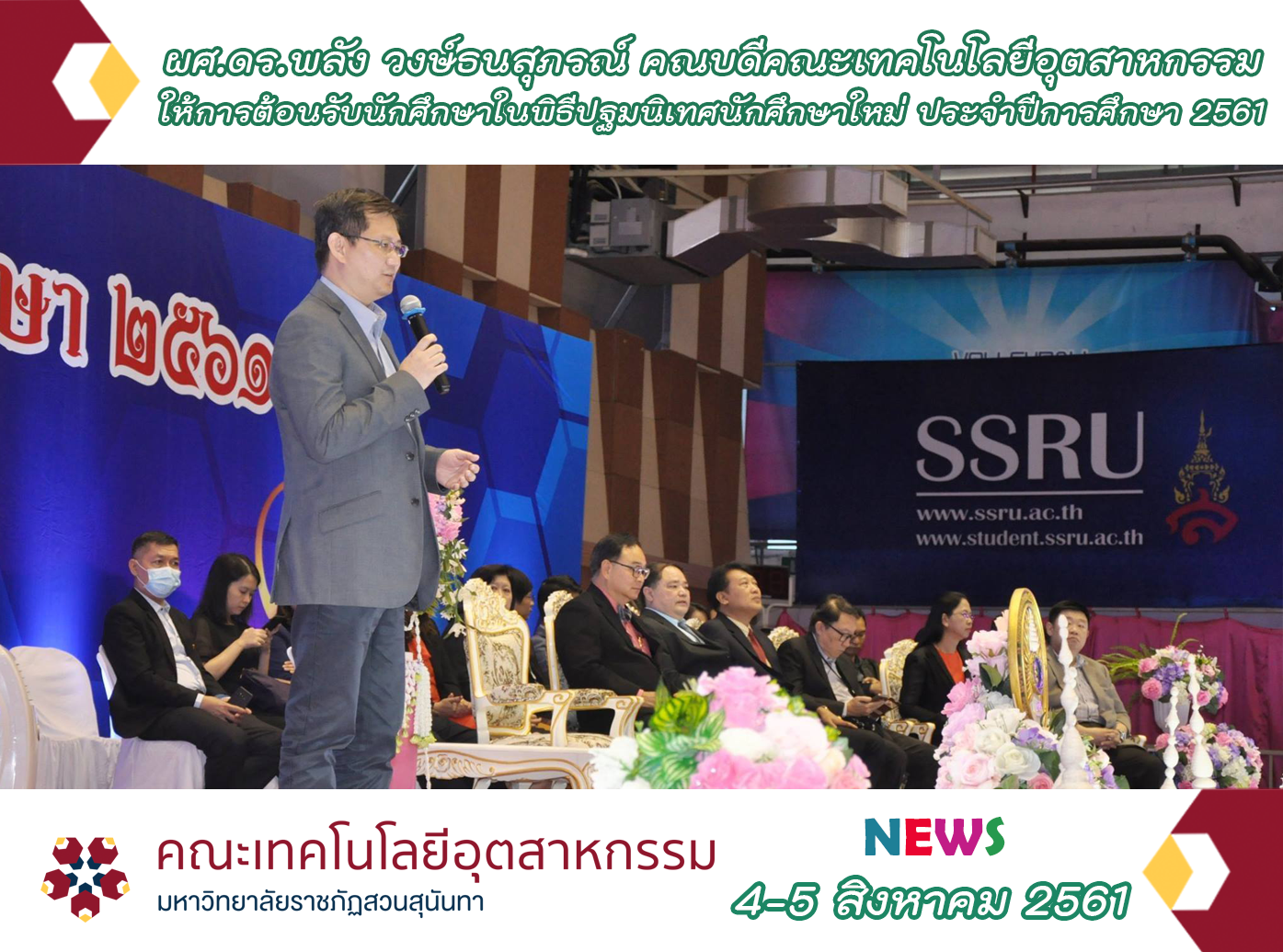 คณบดีคณะเทคโนฯ ให้การต้อนรับนักศึกษาในพิธีปฐมนิเทศนักศึกษาใหม่ ประจำปีการศึกษา 2561