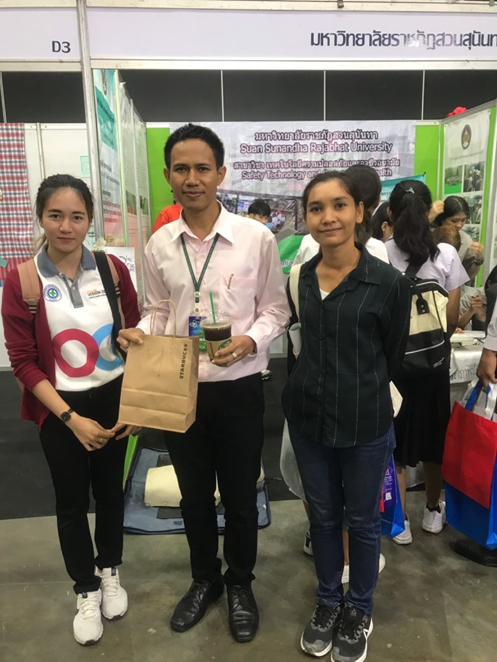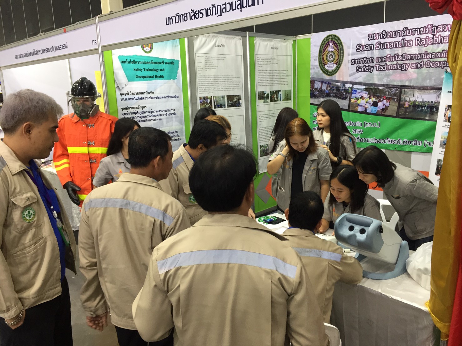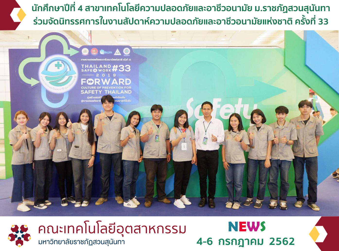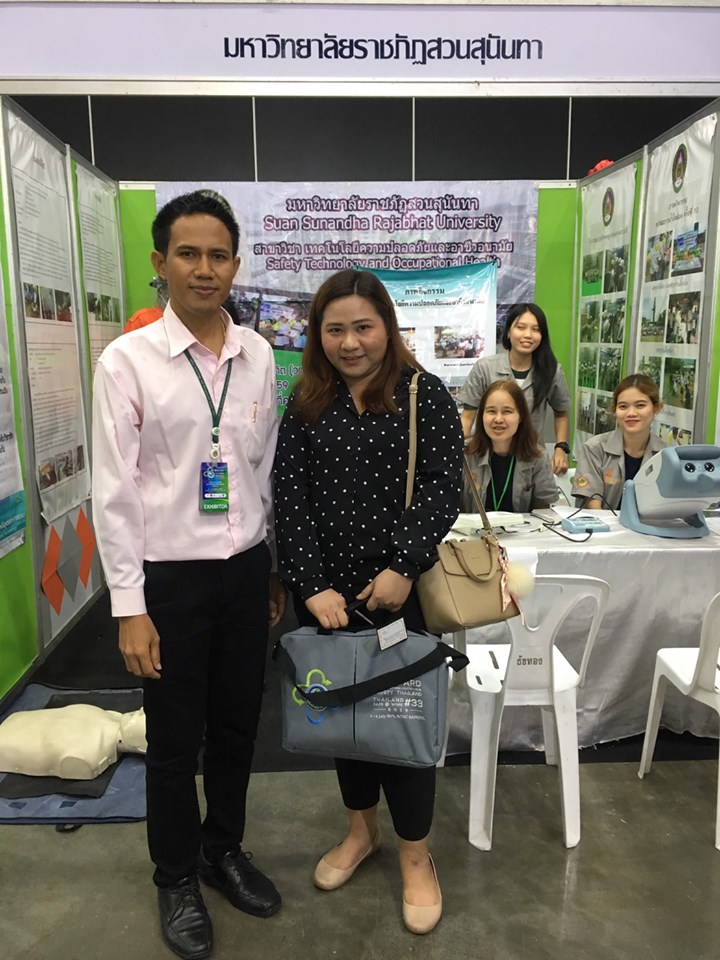 นักศึกษาปีที่ 4 สาขาเทคโนโลยีความปลอดภัยและอาชีวอนามัย มหาวิทยาลัยราชภัฏสวนสุนันทา จัดนิทรรศการและประชาสัมพันธ์สาขา ในงานสัปดาห์ความปลอดภัยและอาชีวอนามัยแห่งชาติ ครั้งที่ 33 (Thailand Safe@Work #33 2019) ในวันที่ 4-6 กรกฎาคม 2562 บูท D2 ฮอลล์ EH 101-102 ณ ศูนย์นิทรรศการและการประชุมไบเทค บางนา กทม.