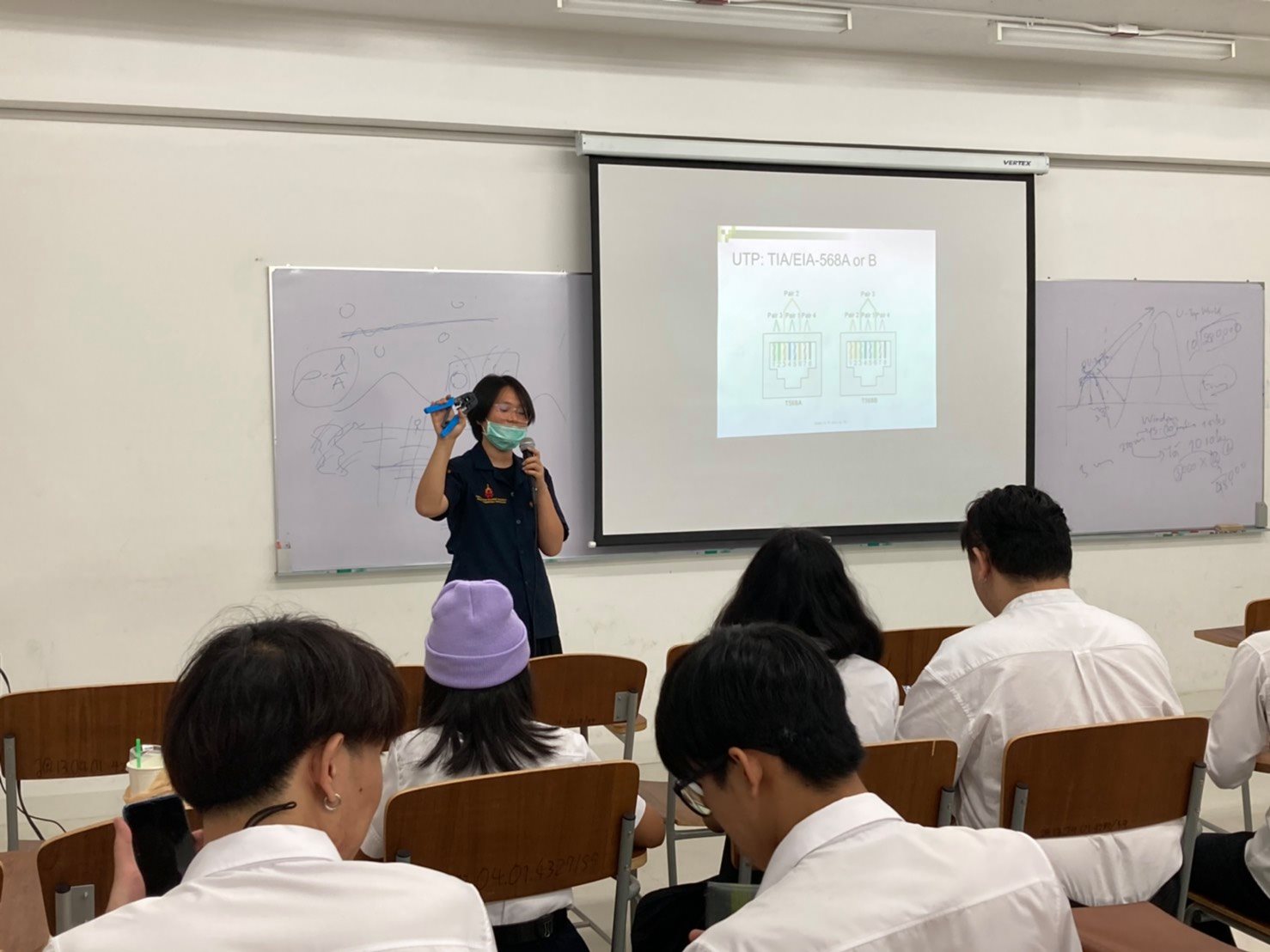 วันที่ 4 สิงหาคม 2563 นักศึกษา ชั้นปีที่ 2 สาขาวิชาวิศวกรรมคอมพิวเตอร์ ทำกิจกรรม Cabling Workshop วิชา CPE2222 Data Communication ในเรื่อง Transmission Media โดยมีอาจารย์ ดร.เศรษฐกาล โปร่งนุช เป็นผู้สอน และมี TA เป็นรุ่นพี่ชั้นปีที่ 3 ได้แก่ นางสาว ชุติมา บูรณะ และ นางสาว ธัญญารัตน์ ไอซิม นำประสบการณ์จากการแข่งขัน Cabling Contest ปี2019 มาสอนรุ่นน้อง