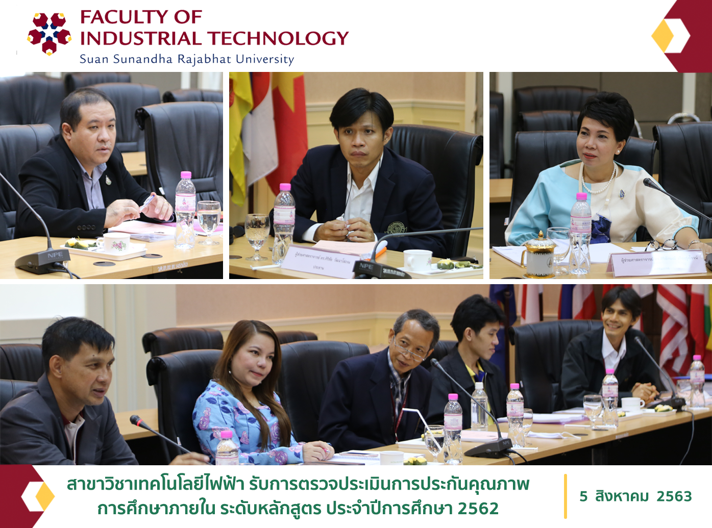 วันพุธที่ 5 สิงหาคม 2563 สาขาวิชาเทคโนโลยีไฟฟ้า คณะเทคโนโลยีอุตสาหกรรม รับการตรวจประเมินคุณภาพการศึกษาภายใน ระดับหลักสูตร ประจำปีการศึกษา 2562 ณ ห้องประชุมพิสมัยพิมลสัตย์ อาคาร 43 โดยมีคณาจารย์ประจำสาขาวิชาร่วมให้การต้อนรับคณะกรรมการตรวจประเมินฯ ซึ่งในการนี้ได้รับเกียรติจากคณะกรรมการผู้ทรงคุณวุฒิจากภายนอกมหาวิทยาลัย ได้แก่ ผู้ช่วยศาสตราจารย์ ดร.ศิริชัย วัฒนาโสภณ สังกัดมหาวิทยาลัยเกษตรศาสตร์ วิทยาเขตศรีราชา เป็นประธานการตรวจประเมินฯ ผู้ช่วยศาสตราจารย์ ดร.ศิริลักษณ์ เรืองรุ่งโรจน์ สังกัดมหาวิทยาลัยศรีนครินทรวิโรฒ ประสานมิตร ดร.พรเทพ ปัญญาแก้ว สังกัดมหาวิทยาลัยเทคโนโลยีราชมงคลอีสาน คณะกรรมการตรวจประเมินฯ ในครั้งนี้
