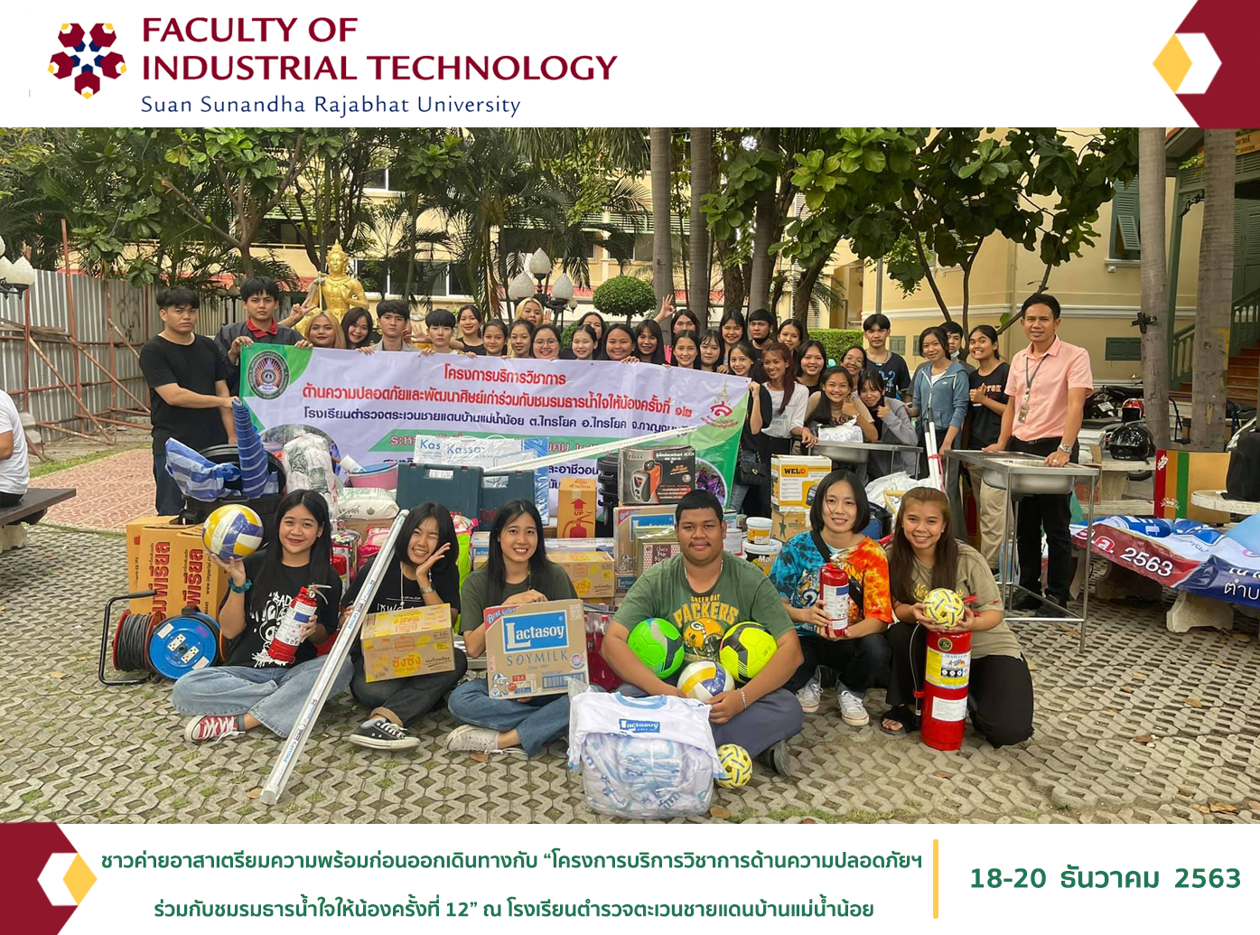 กายพร้อมใจพร้อม ชาวค่ายอาสาเตรียมความพร้อมก่อนออกเดินทางกับ “โครงการบริการวิชาการด้านความปลอดภัยฯ ร่วมกับชมรมธารน้ำใจให้น้องครั้งที่ 12” ณ โรงเรียนตำรวจตะเวนชายแดนบ้านแม่น้ำน้อย ต.ไทรโยก อ.ไทรโยก จ.กาญจนบุรี ระหว่าง 18-20 ธ.ค. 2563