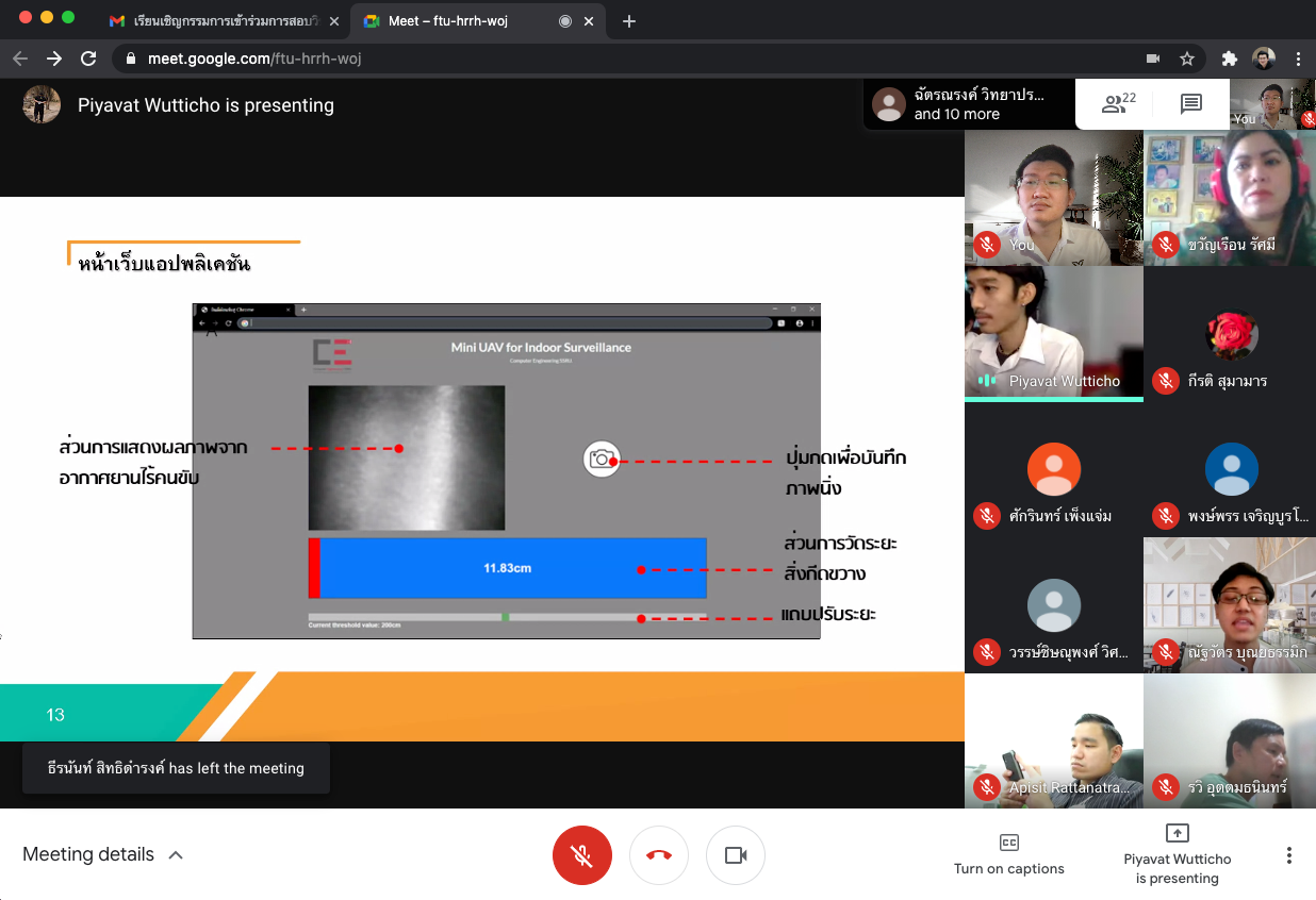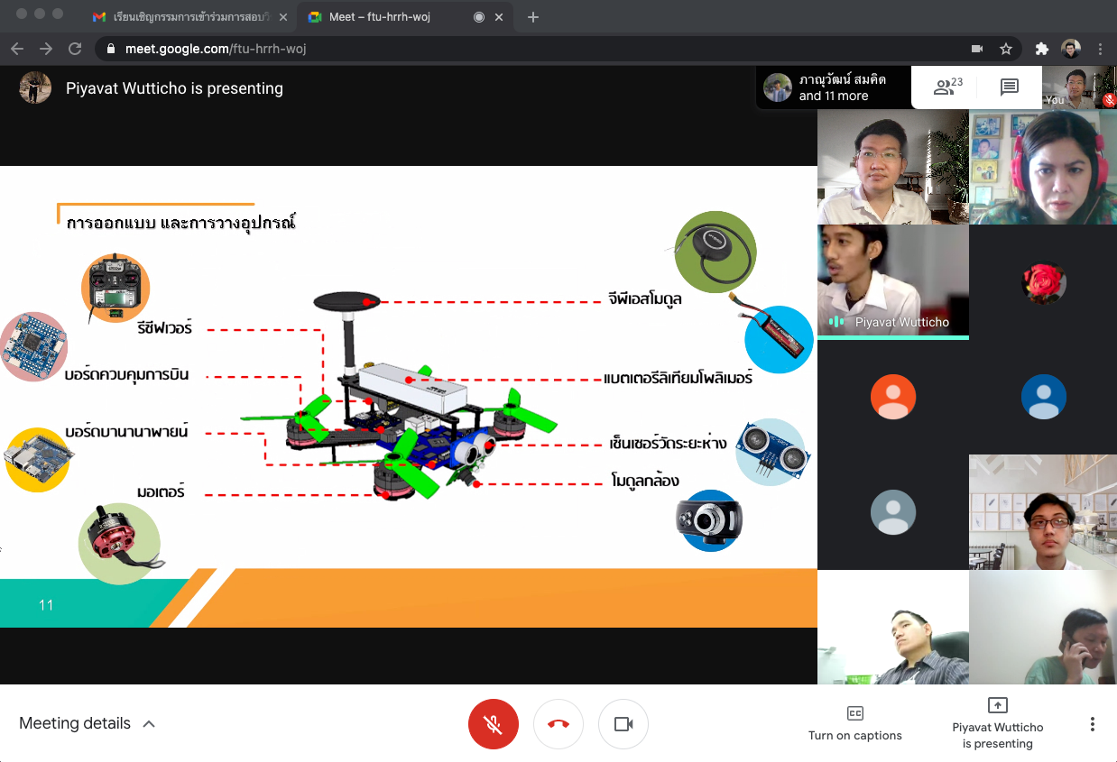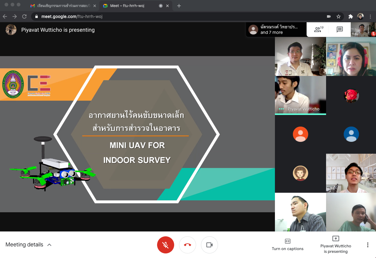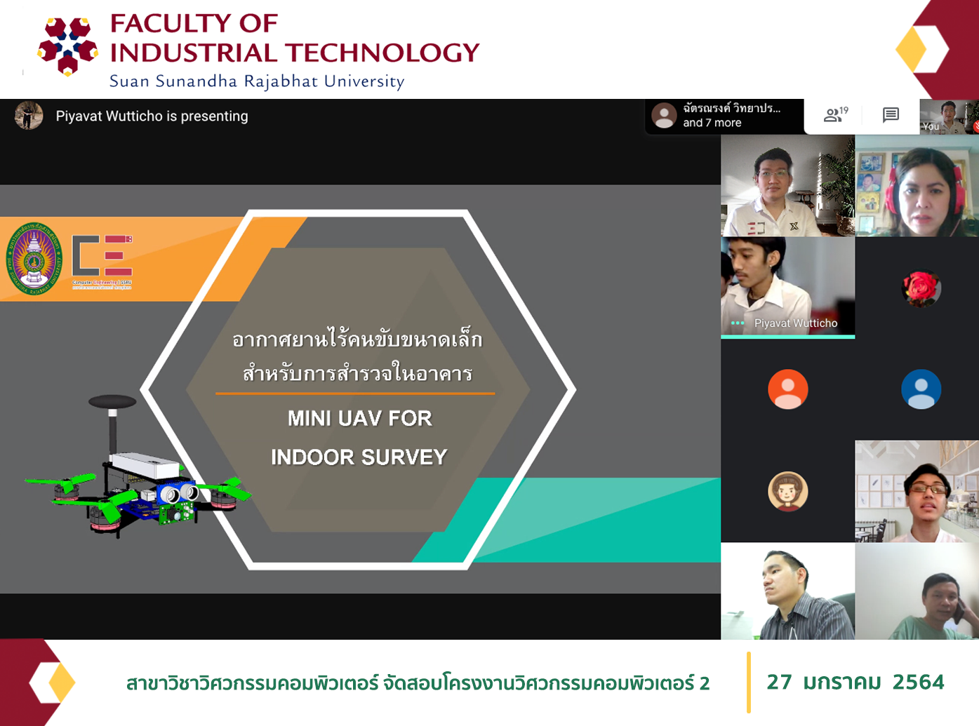 ในหัวข้อเรื่อง"อากาศยานไร้คนขับขนาดเล็กสำหรับการสำรวจในอาคาร" โดยมีอาจารย์ ดร.เศรษฐกาล โปร่งนุช เป็นอาจารย์ที่ปรึกษา และมีอาจารย์ในสาขาวิชาฯ เป็นคณะกรรมการในการสอบ