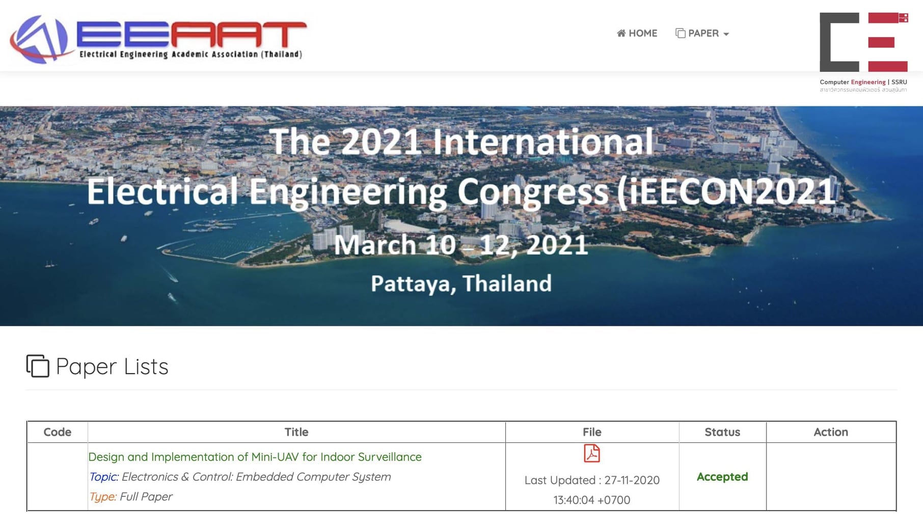 โดยกลุ่มนี้ จะนำผลงานไปนำเสนอในงานประชุมวิชาการระดับนานาชาติ International Electrical Engineering Congress (iEECON2021) ในวันที่ 10-12 มีนาคม 2564 ณ PULLMAN Pattaya Hotel G พัทยา