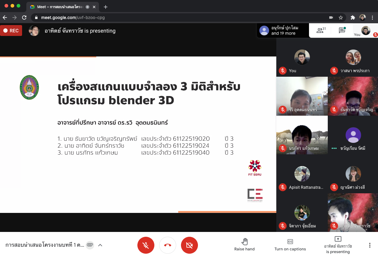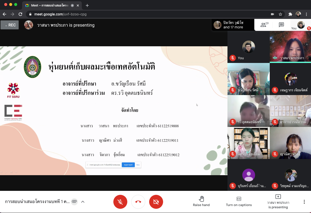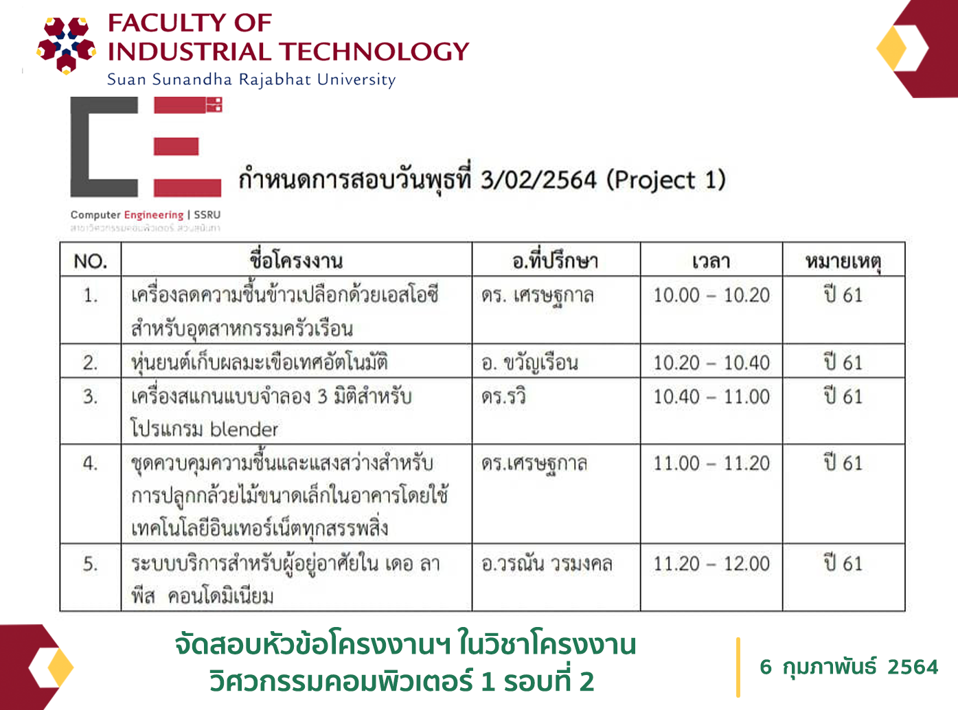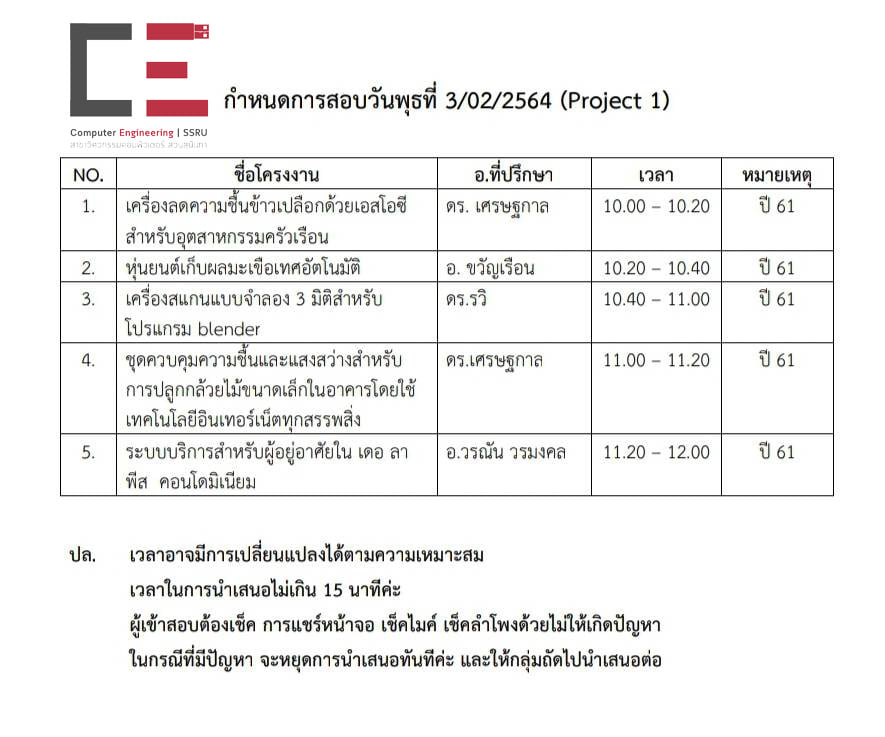 3 ก.พ. 2564 สาขาวิชาวิศวกรรมคอมพิวเตอร์ ได้จัดสอบหัวข้อโครงงานฯ ในวิชาโครงงานวิศวกรรมคอมพิวเตอร์ 1 รอบที่ 2 ของ นศ. ชั้นปีที่ 3 ผ่าน Google Meet โดยมีอาจารย์ในสาขาวิชาฯ เป็นกรรมการสอบ