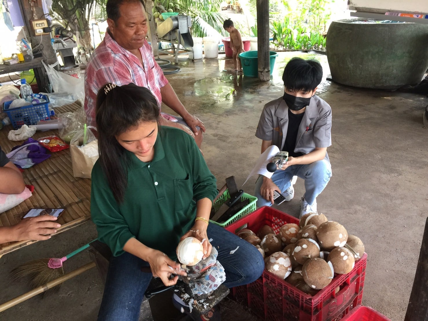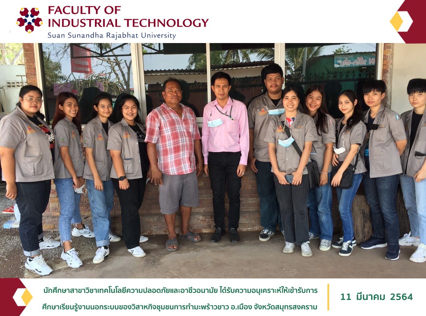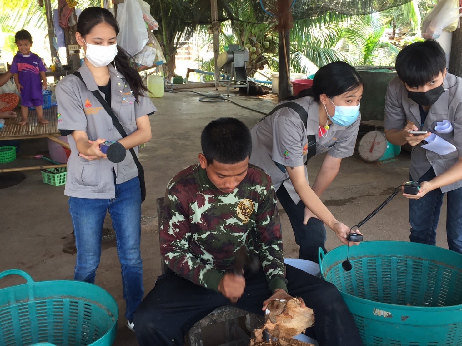 วันที่ 11 มี.ค. 2564 นักศึกษาสาขาวิชาเทคโนโลยีความปลอดภัยและอาชีวอนามัย ได้รับความอนุเคราะห์ให้เข้ารับการศึกษาเรียนรู้งานนอกระบบของวิสาหกิจชุมชนการทำมะพร้าวขาว ณ ล้งโชควิชาญ อ.เมือง จังหวัดสมุทรสงคราม โดยล้งจะรับซื้อมะพร้าวทั้งลูกมาแล้วผ่านกระบวนดังนี้ 1) การเอาเปลือกออก 2) กะเทาะกะลาออก 3) ขูดเปลือกสีน้ำตาลออกจนเหลือเฉพาะเนื้อขาวๆ (มะพร้าวขาว) และผ่าเอาน้ำออก แล้วส่งให้กับโรงงานผลิตกระทิกล่อง ซึ่งทุกส่วนที่เหลือจากการทำมะพร้าวขาวจะถูกนำไปใช้ประโยชน์ได้ทุกส่วน ได้แก่ เปลือกจะนำส่งเข้าโรงสับเพื่อขายเกษตรกร กะลาส่งขายโรงงานเพื่อใช้เป็นเชื้อเพลิง น้ำมะพร้าวนำส่งโรงงานทำวุ้นมะพร้าว เศษเนื้อสีนำตาลที่ริดออกนำไปตากแล้วส่งโรงงานผลิตอาหารสัตว์ การศึกษาในครั้งนี้ นศ.ได้ประเมินความเสี่ยงในสภาพแวดล้อมการทำงาน คือ 1) ตรวจวัดเสียง 2) ตรวจวัดความสั่นสะเทือนมือ-แขน 3) แสงสว่าง 4) ฝุ่นละออง 5) เก็บตัวอย่างน้ำในคลองบริเวณล้ง 5) และประเมินท่าทางการทำงานตามหลักการยศาสตร์ด้วย RULA เพื่อดำเนินการปรับปรุงสถานีงานให้เกิดความปลอดภัยต่อไป สาขาวิชาฯ ขอขอบคุณ ล้งโชควิชาญ ไว้ ณ โอกาสนี้