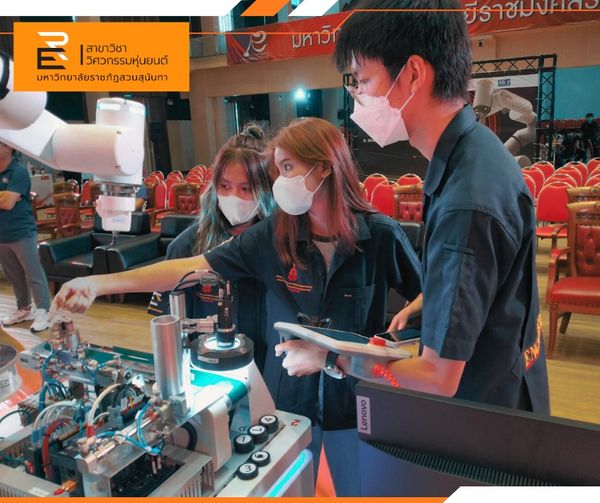 19/07/2023 รศ.ดร.นารีนาถ รักสุนทร และอาจารย์กฤษกร อินต๊ะวิชัย อาจารย์สาขาวิชาวิศวกรรมหุ่นยนต์ และนักศึกษาสาขาวิชาวิศวกรรมหุ่นยนต์ ได้แก่ นายสหเกียรติ มงคลพงศ์พัฒน์ นางสาวลัคนาพร ผึ่งผาย และนางสาวปฏิพร ไชยพร เข้าฝึกซ้อมการแข่งขันทักษะการควบคุมหุ่นยนต์ Collaborative Robot ชิงแชมป์ประเทศไทย ประจำปี 2566 ณ มหาวิทยาลัยเทคโนโลยีราชมงคลรัตนโกสินทร์ ศาลายา จังหวัดนครปฐม ในรายการ Cobot contest Thailand 2023 ที่จะจัดขึ้นในวันที่ 20-21 กรกฏาคม 2566