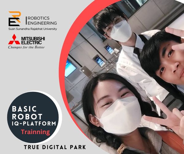 28 สิงหาคม 2566 นางสาวภาศิญา สงวนศักดิ์ นายพิทวัฒน์ สุวรรณบุตร และนายสหเกียรติ มงคลพงศพัฒน์ นักศึกษาชั้นปีที่ 2 สาขาวิชาวิศวกรรมหุ่นยนต์ คณะเทคโนโลยีอุตสาหกรรม มหาวิทยาลัยราชภัฏสวนสุนันทา เข้าร่วมอบรม Basic Robot (iQ-Platform) วันแรก จัดโดยบริษัท Mitsubishi Electric Factory Automation (Thailand) Co., Ltd. ณ ตึก ทรู ดิจิทัล พาร์ค