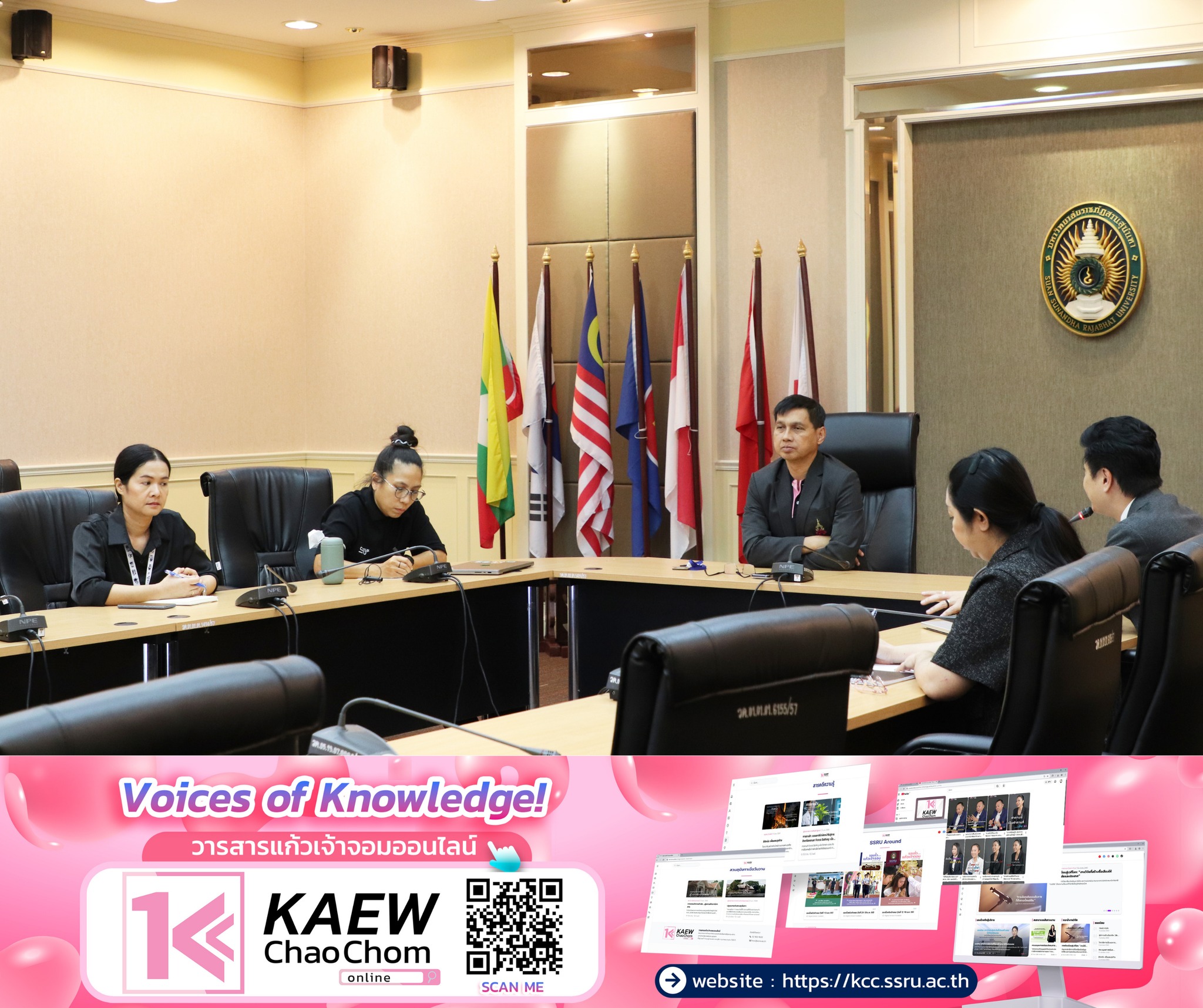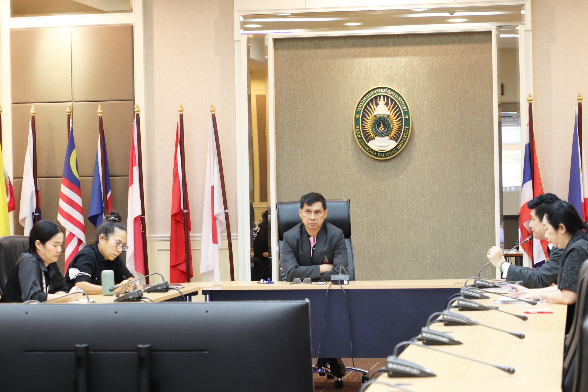 วันที่ 20 มกราคม 2569 ผู้ช่วยศาสตราจารย์ ดร.ชนมภัทร โตระสะ คณบดี คณะวิศวกรรมศาสตร์และเทคโนโลยีอุตสาหกรรม พร้อมด้วย ผู้ช่วยศาสตราจารย์ ดร.ขวัญใจ สุขก้อน รองคณบดีฝ่ายกิจการนักศึกษา และคุณณธกมล ลูกคำ หัวหน้าฝ่ายกิจการนักศึกษา เข้าร่วมประชุมติดตามการรายงานผลการดำเนินงานผลลัพธ์สำคัญ (KR) ระดับมหาวิทยาลัย `โดยมี ผู้ช่วยอธิการบดีฝ่ายวิเทศสัมพันธ์ เป็นผู้กำกับดูแล และรายงานผลการดำเนินงานผลลัพธ์สำคัญ KR 6.3 จำนวน MOU/MOA/LOI เครือข่ายต่างประเทศที่มีข้อตกลงร่วมกับมหาวิทยาลัย และ KR 6.4 จำนวนกิจกรรมที่ดำเนินร่วมกับพันธมิตรต่างประเทศในการจัดการเรียนการสอน และวิจัย ประจำปีงบประมาณ พ.ศ. 2569 ณ ห้องประชุมพิสมัยพิมลสัตย์ ชั้น 5 อาคาร 43 คณะวิศวกรรมศาสตร์และเทคโนโลยีอุตสาหกรรม มหาวิทยาลัยราชภัฏสวนสุนันทา